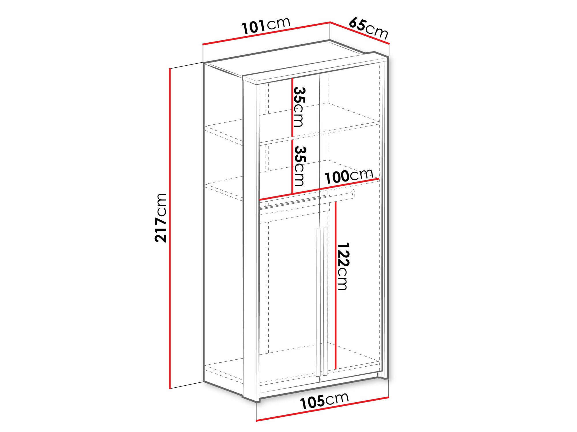 217 cm  101 cm  65 cm