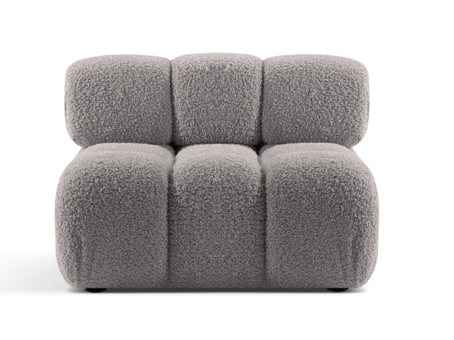 „Boucle“ (Bouclé) audinys išsiskiria unikaliu tekstūriniu raštu, kurį sukuria skirtingų dydžių kilpos ir mazgai. Ši savybė suteikia baldams išskirtinio charakterio ir jaukumo. Audinio paviršius gali būti švelnus arba primenantis vilną. Dėl savo tvirtos struktūros audinys puikiai išlaiko formą, todėl idealiai tinka sofoms, foteliams ar kitiems baldams. Jei siekiate sukurti rafinuotą ir modernią erdvę – šis audinys yra puikus pasirinkimas.
