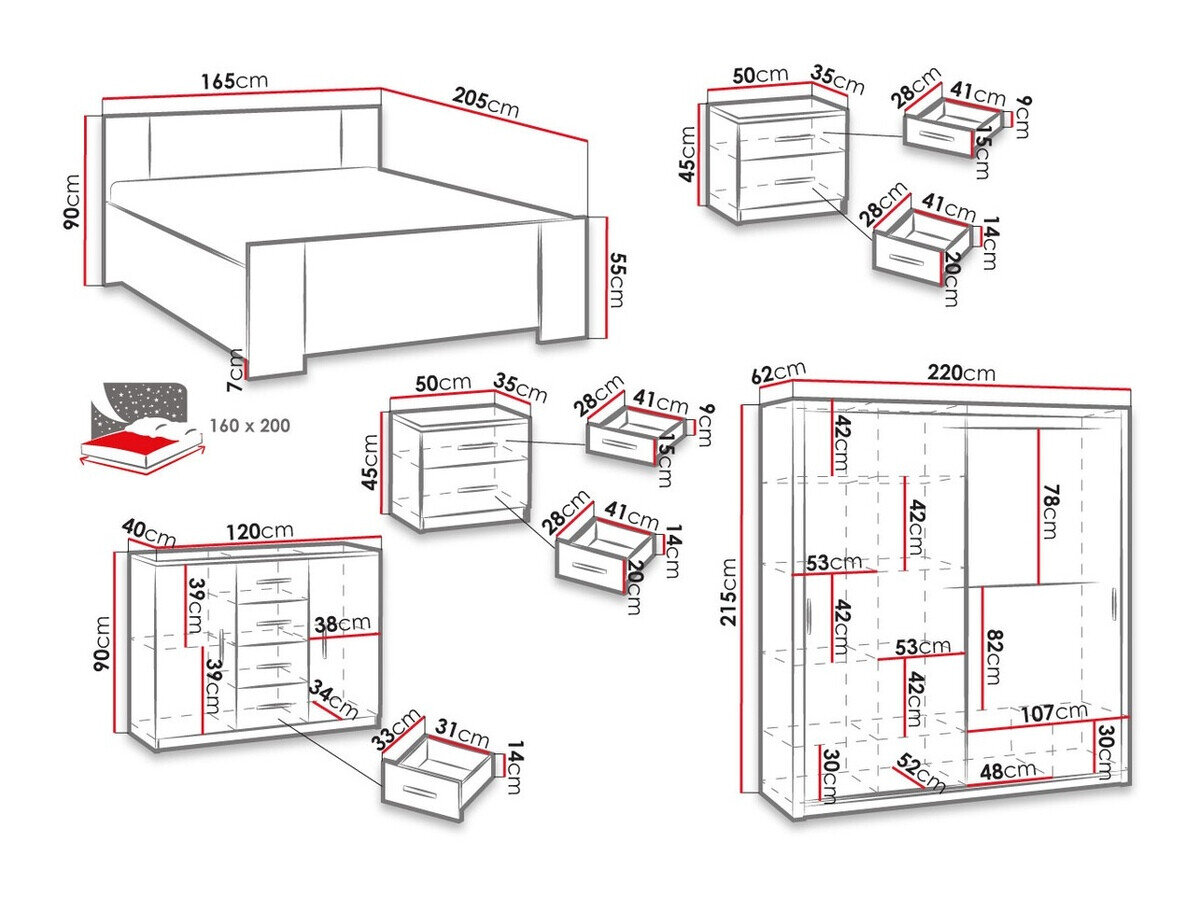 215 cm  220 cm  62 cm