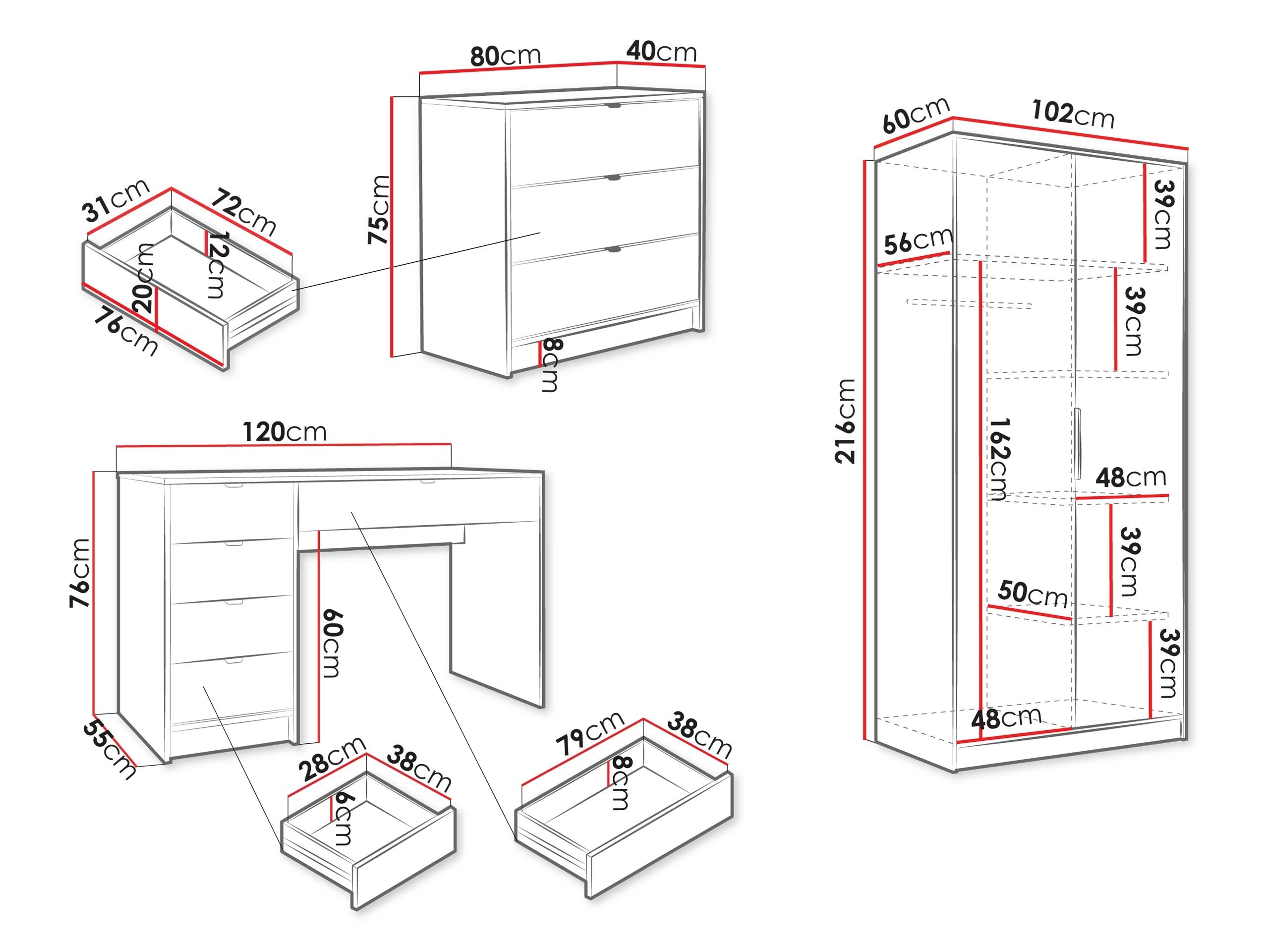 216 x 102 x 60 cm