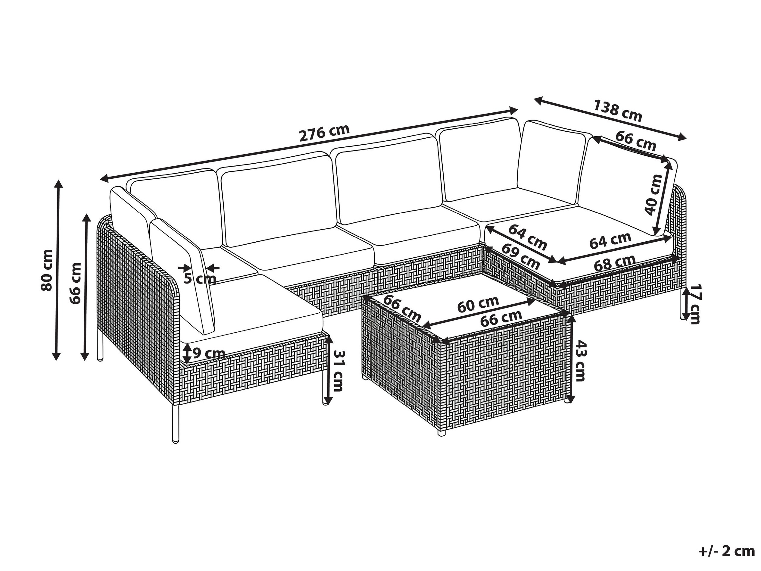 43 x 66 x 66 cm