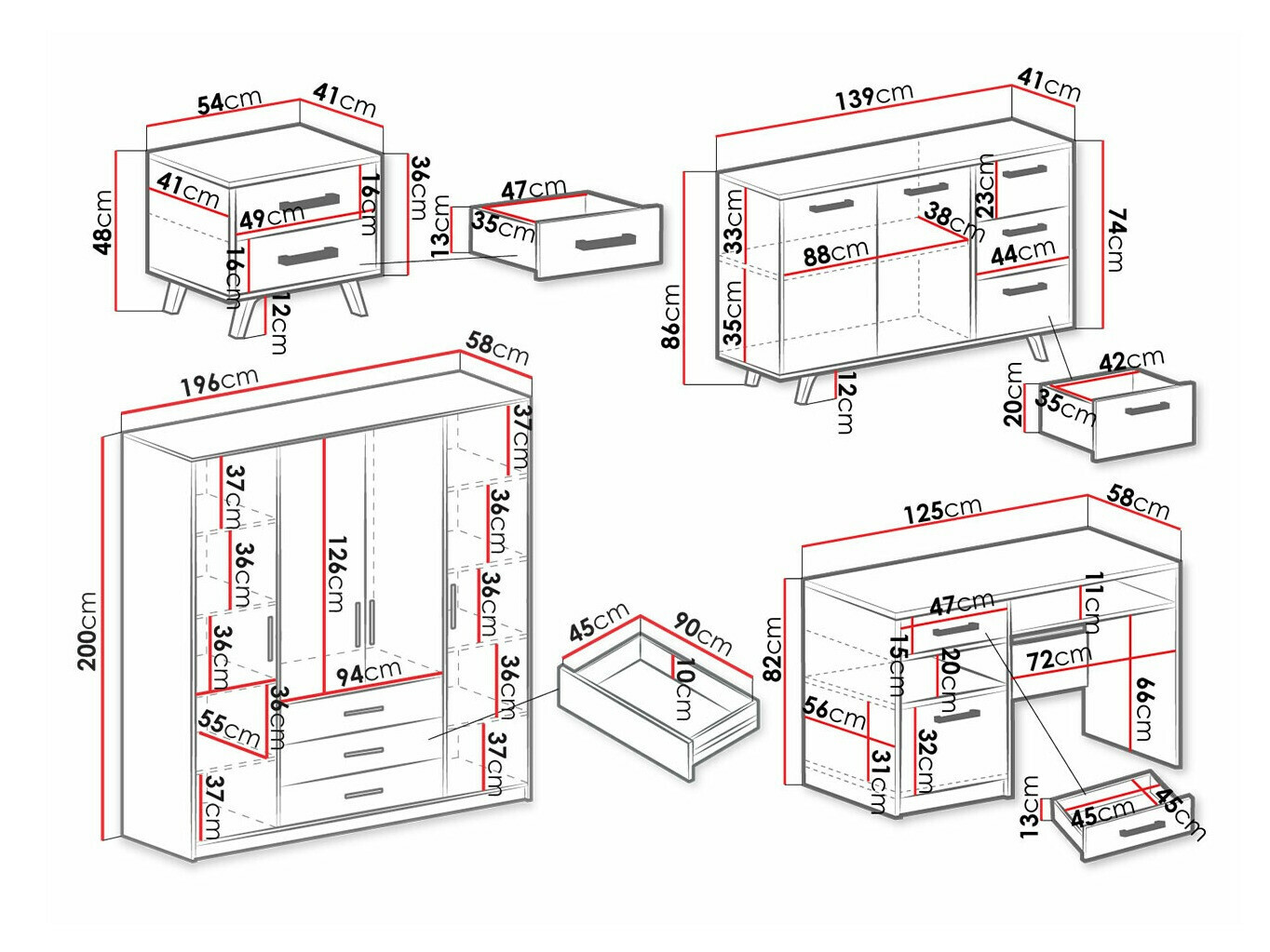 86 x 139 x 41 cm
