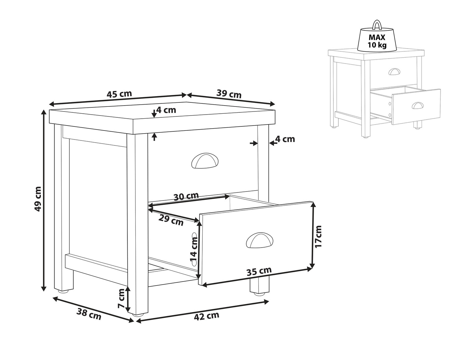 Maksimalus išlaikomas svoris stalčiui: