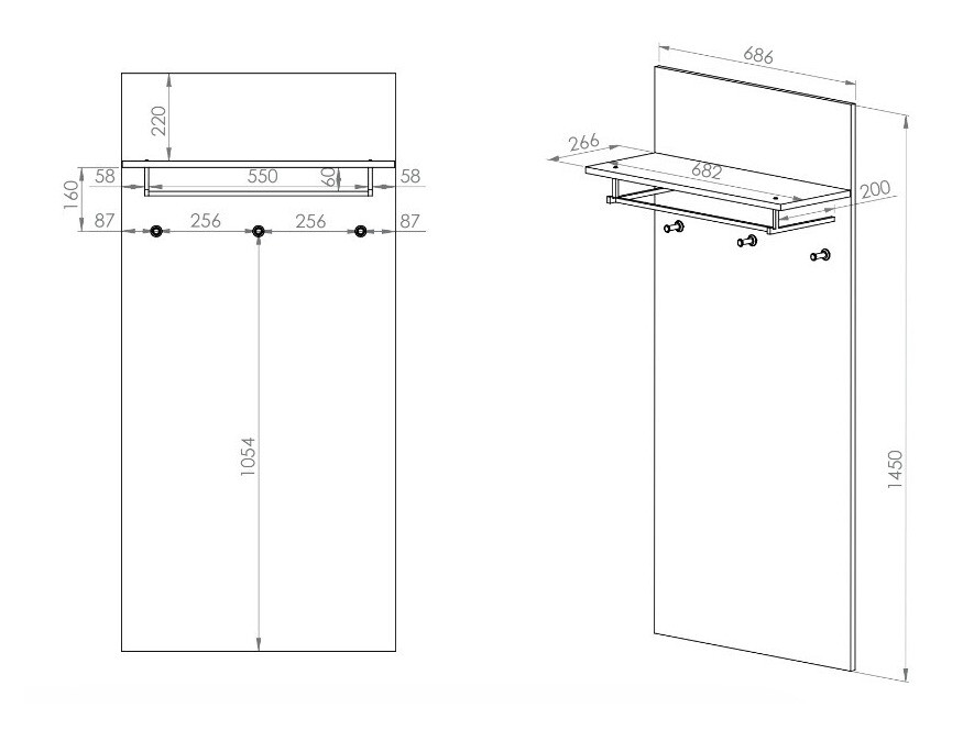 - Sieninė drabužių kabykla