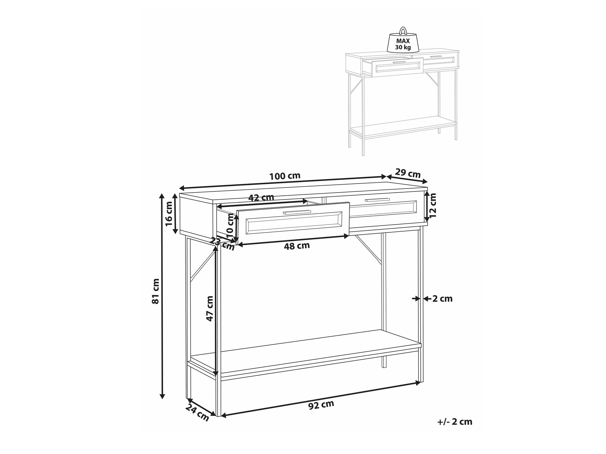 Maksimalus išlaikomas svoris stalčiui: