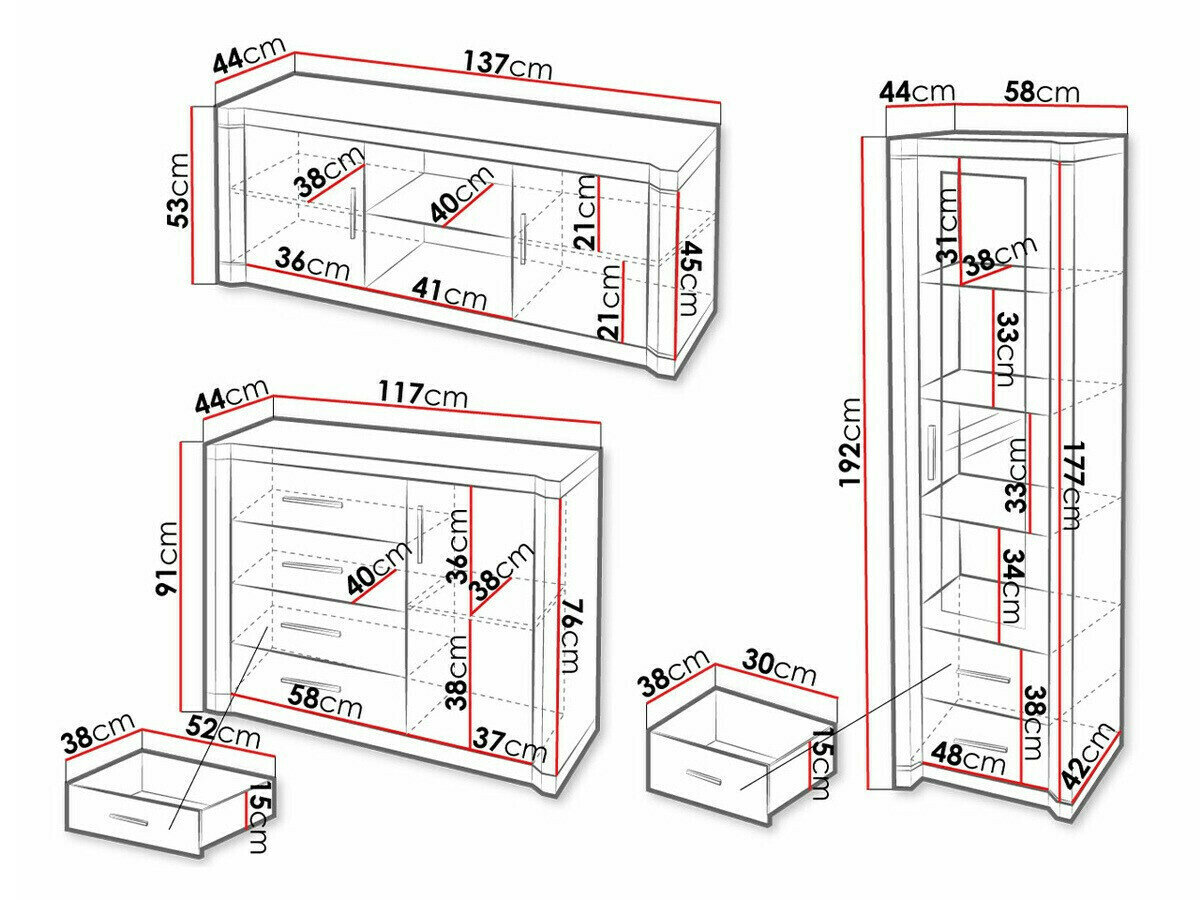 Komodos matmenys: