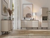 Ši baldų kolekcija pasižymi ypatingu švelnumu, kurį sukuria subtiliai užapvalinti kampai ir harmoningos linijos. Išskirtinis dizaino elementas – reljefinis grūdintas stiklas, kuris subtiliai papildo dizainą tekstūra ir suteikia baldams charakterio. Minimalistinės metalinės rankenėlės išlaiko estetiką ir harmoningai dera net prie modernaus interjero. Kasdienį patogumą užtikrina tylus uždarymo mechanizmas. Šioje kolekcijoje susitinka rafinuota klasika ir modernūs sprendimai.