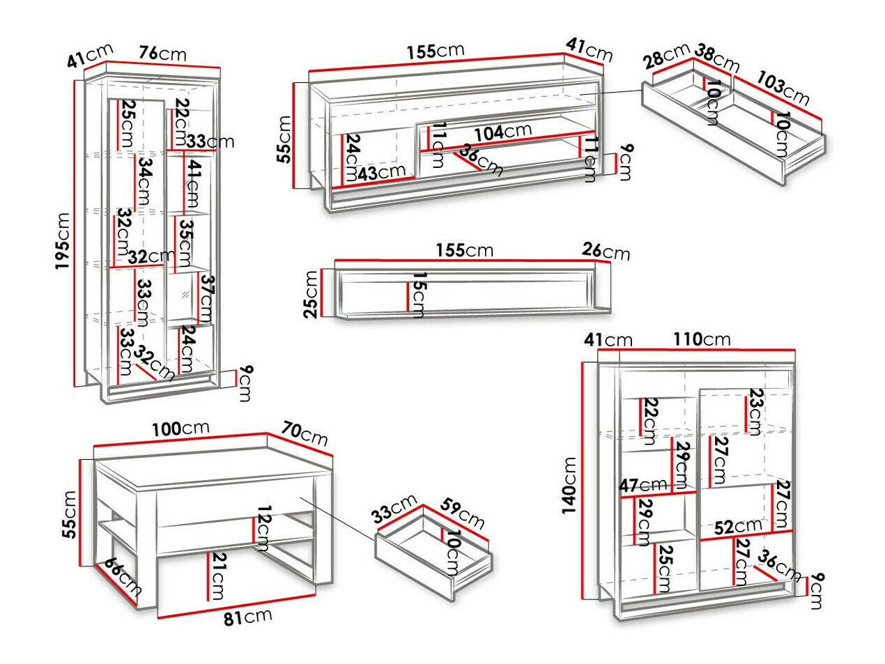 55 x 155 x 41 cm