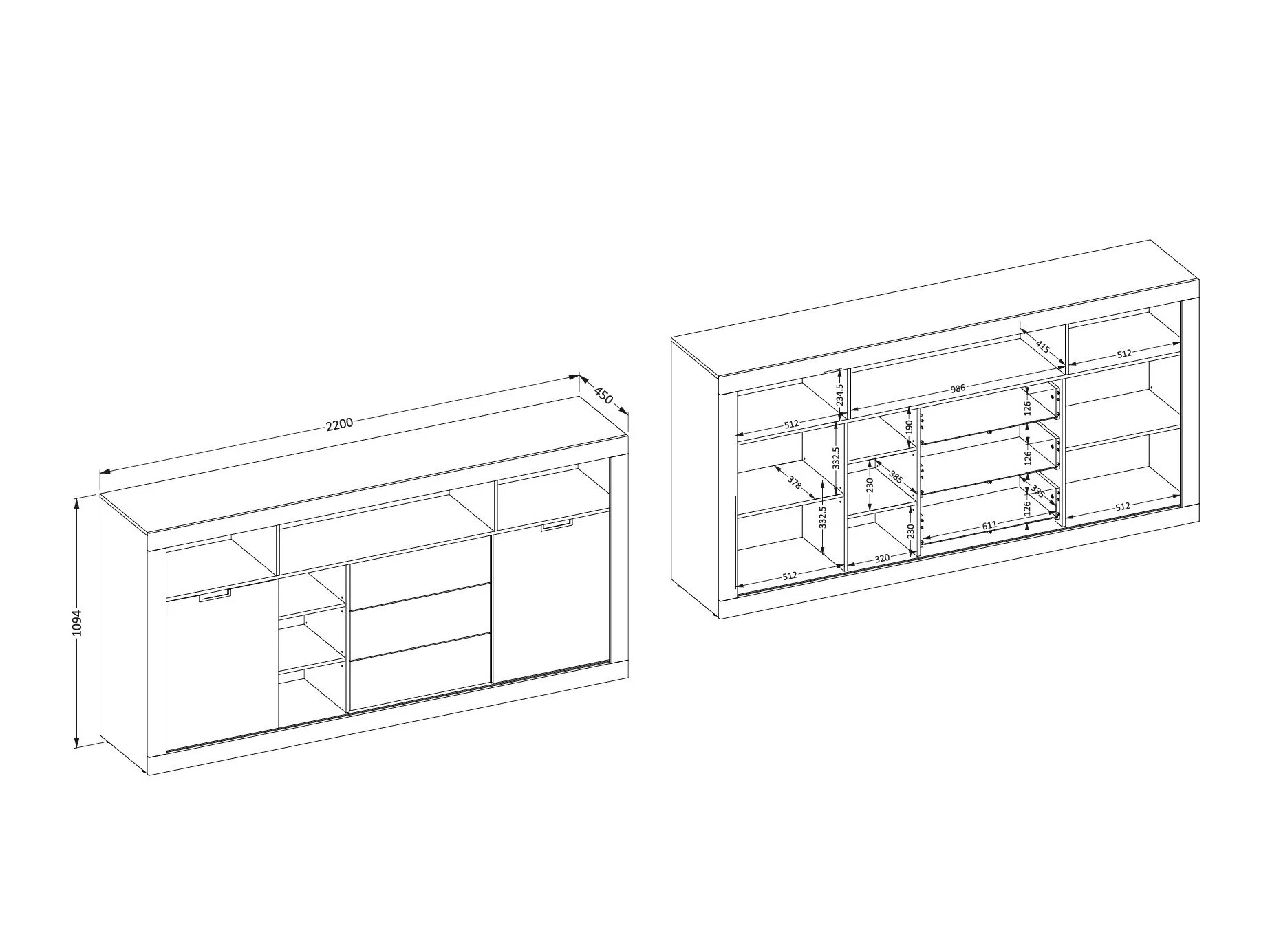 43 x 180 x 40 cm