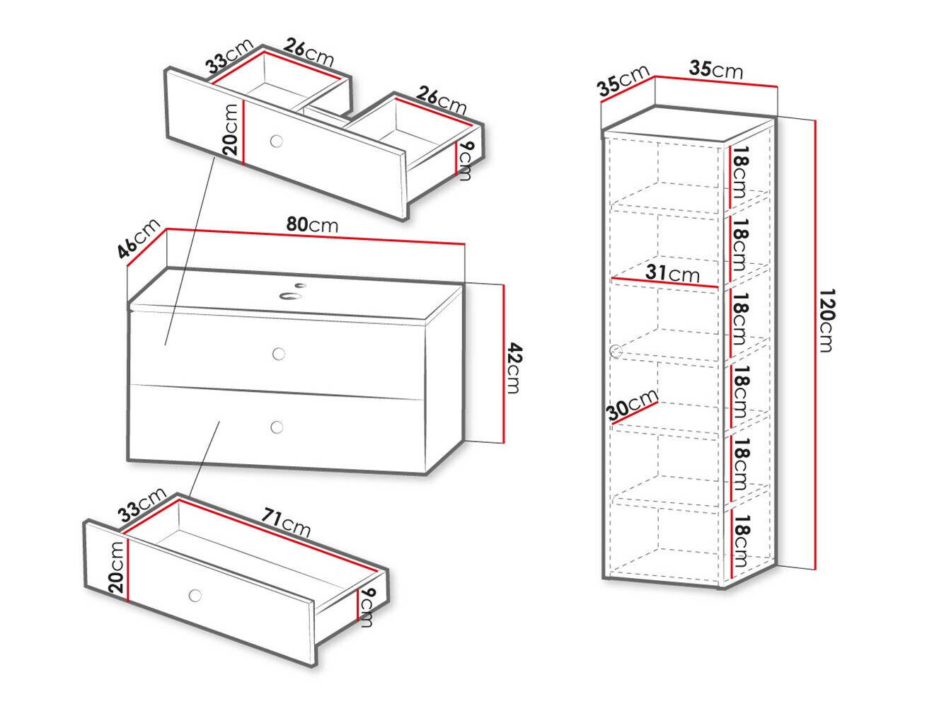 42 x 80 x 46 cm