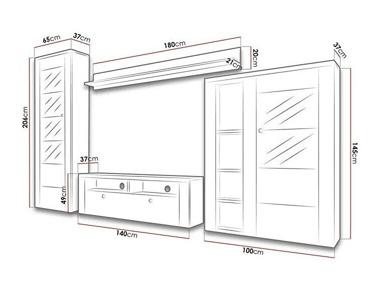 206 x 65 x 37; 145 x 100 x 37 cm