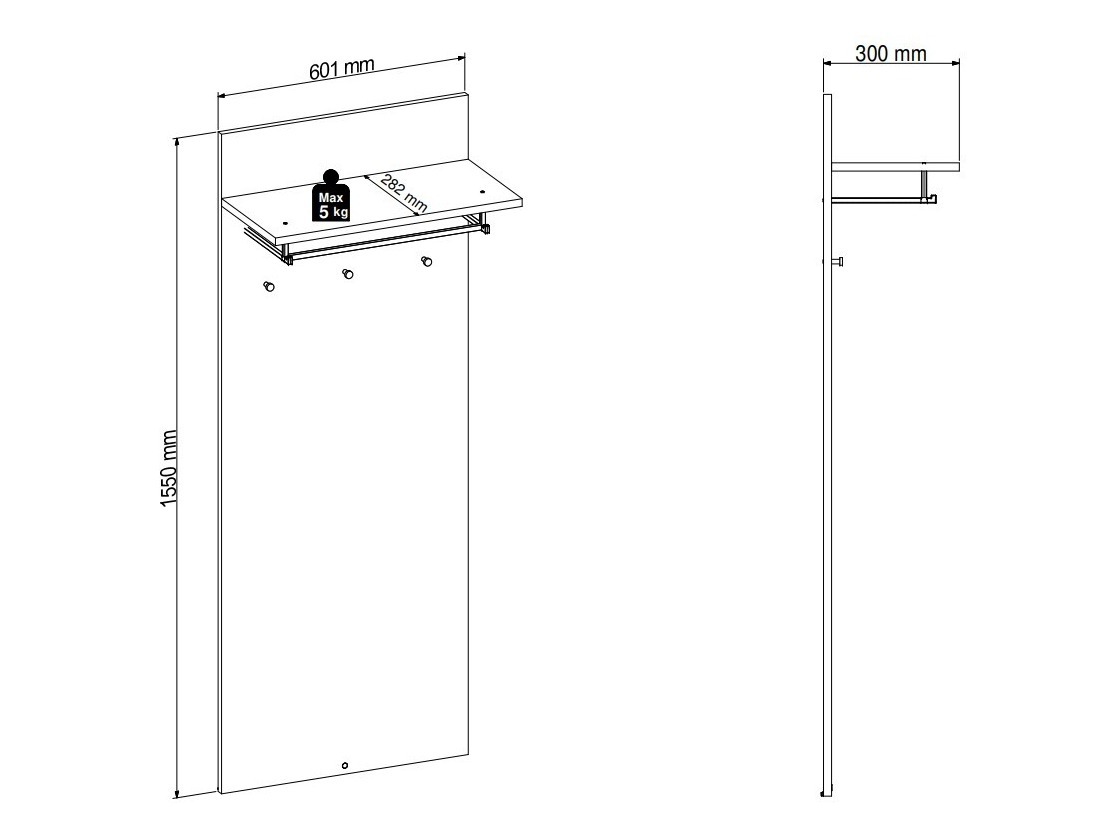 Maksimalus išlaikomas svoris lentynėlei: