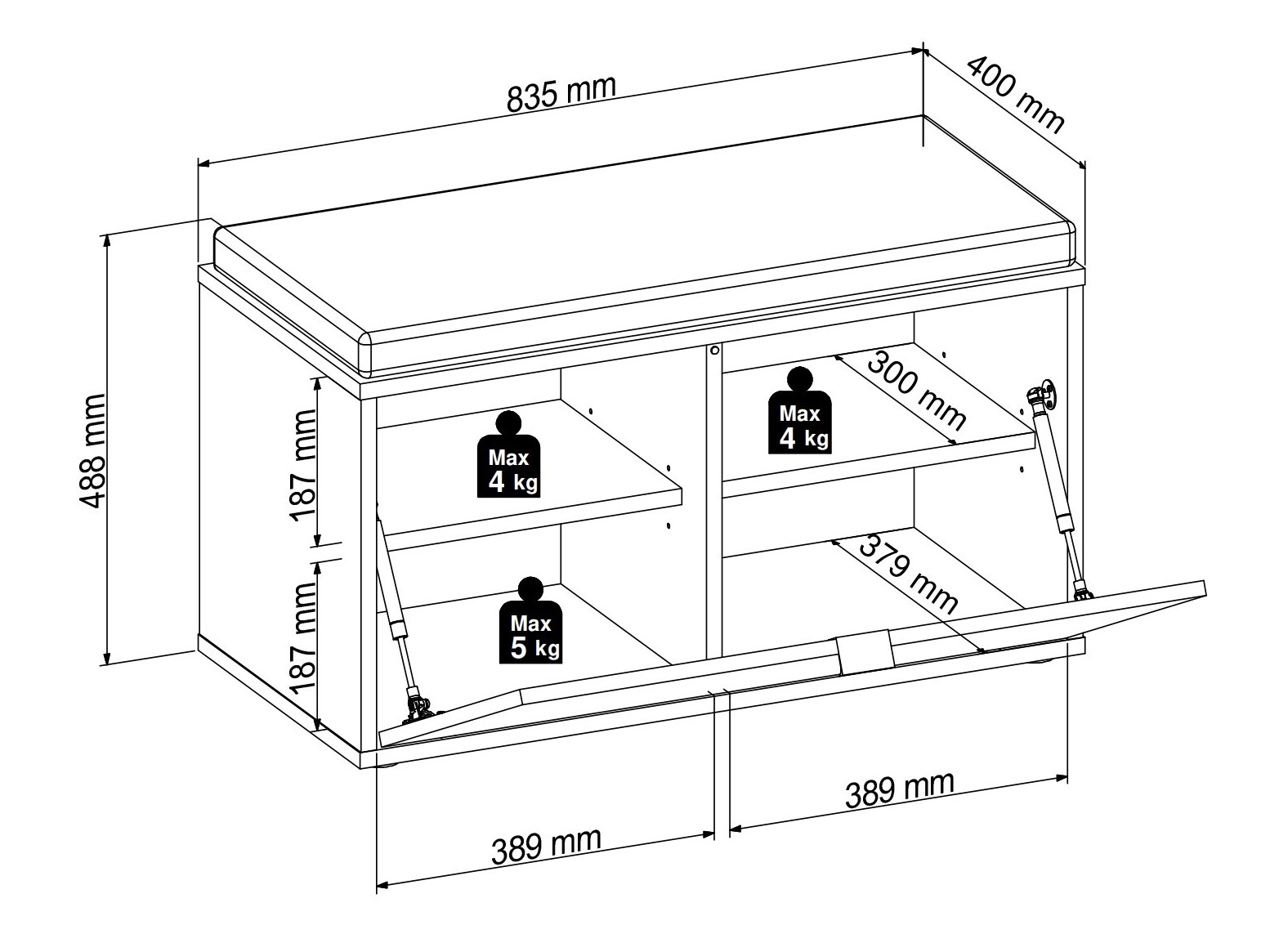 Maksimalus išlaikomas svoris lentynėlei: