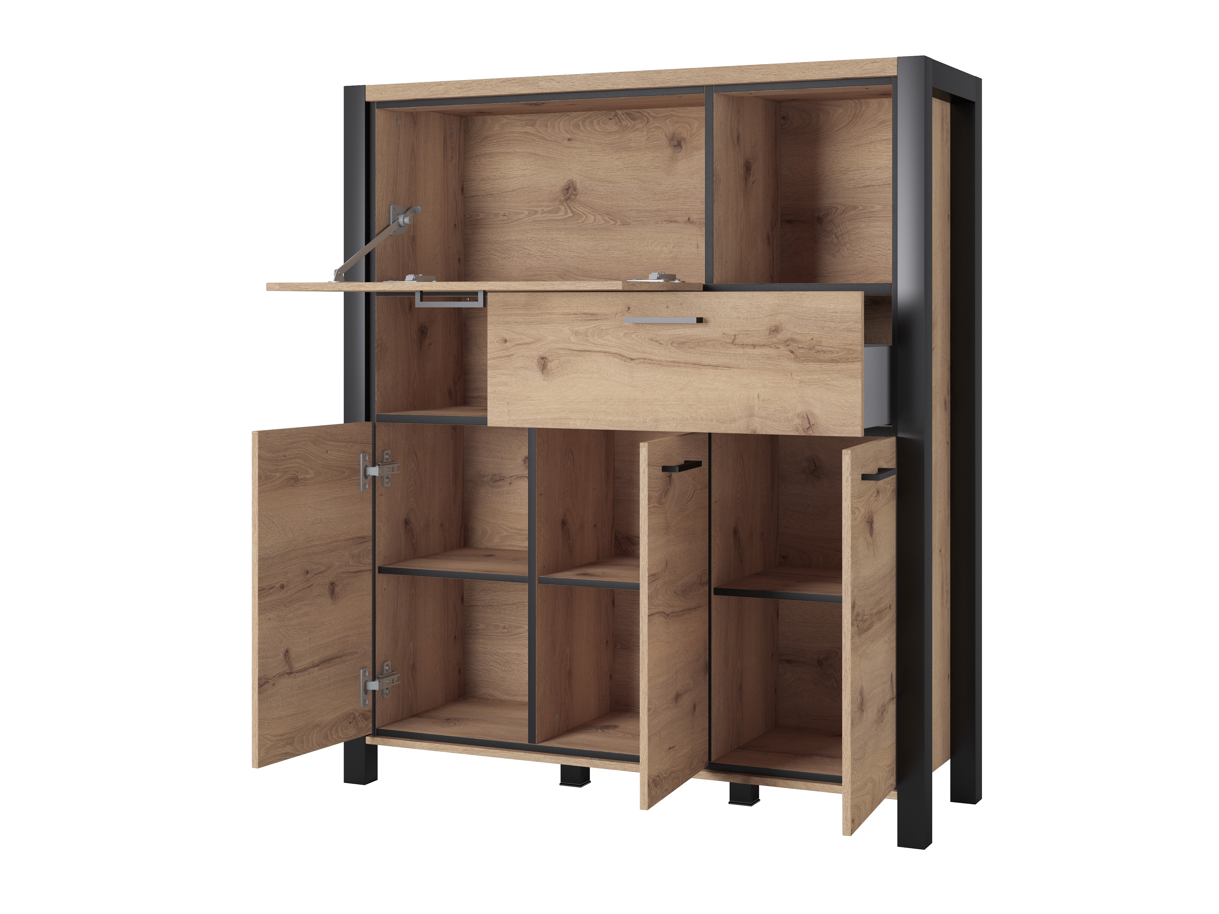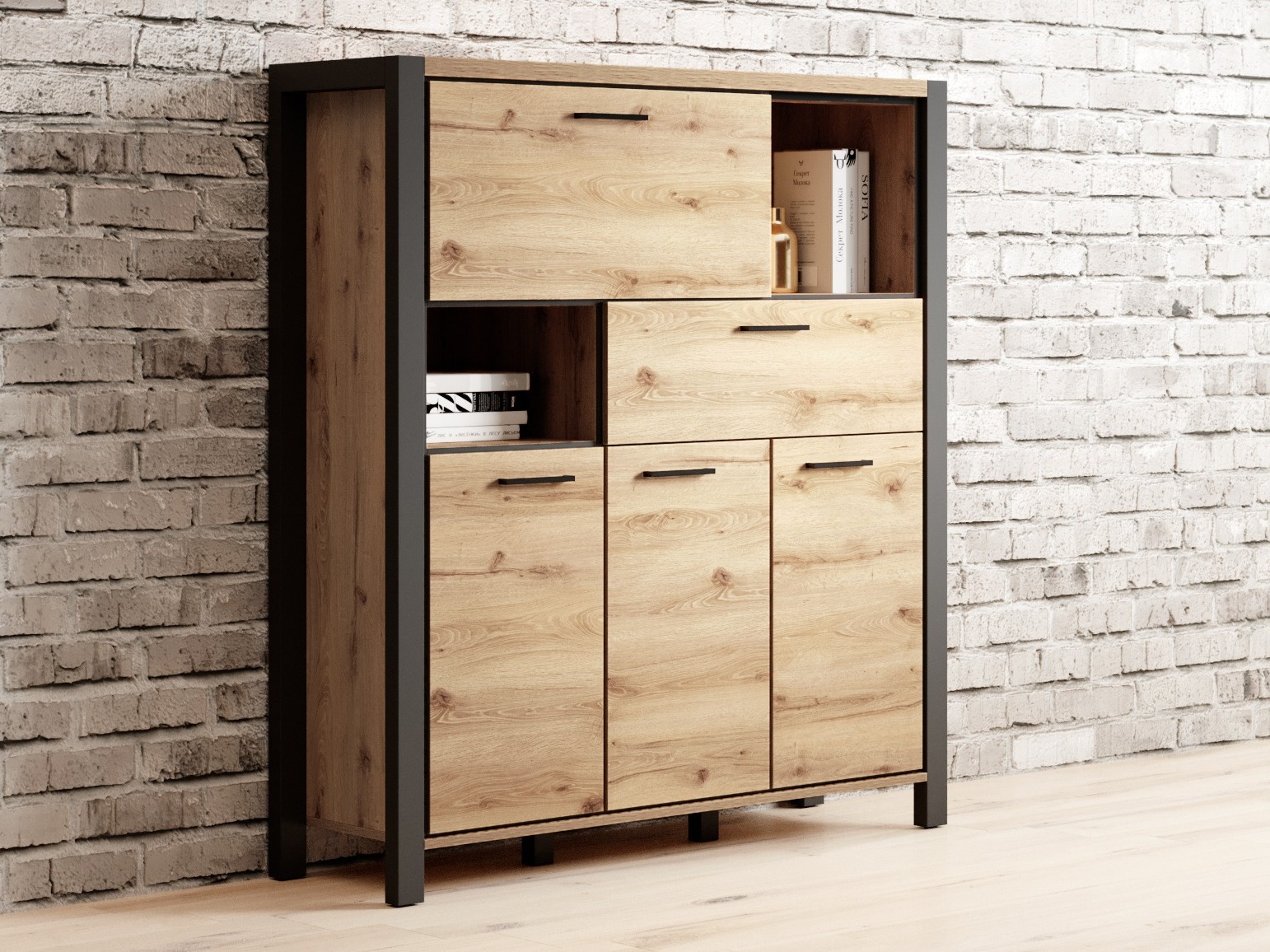 Ši kolekcija sukurta industrinio interjero mylėtojams. Metalinės rankenėlės derinamos su šviesaus ąžuolo spalvos fasadais, kuriuose matomos medžio rašto užuominos. Rankenėlių forma puikiai įsilieja į bendrą dizainą. Baldus išryškina matiniai juodos spalvos apvadai, kurie pabrėžia griežtą baldų siluetą. Vienas iš kolekcijos bruožų yra erdvumas. Itin erdvūs baldų skyriai pasirūpins, kad visi daiktai rastų savo vietą. Ši kolekcija be didelių pastangų leis susikurti industrinio interjero nuotaiką namuose. Dar jaukesnę atmosferą namuose sukursite papildomai užsisakę LED apšvietimą.