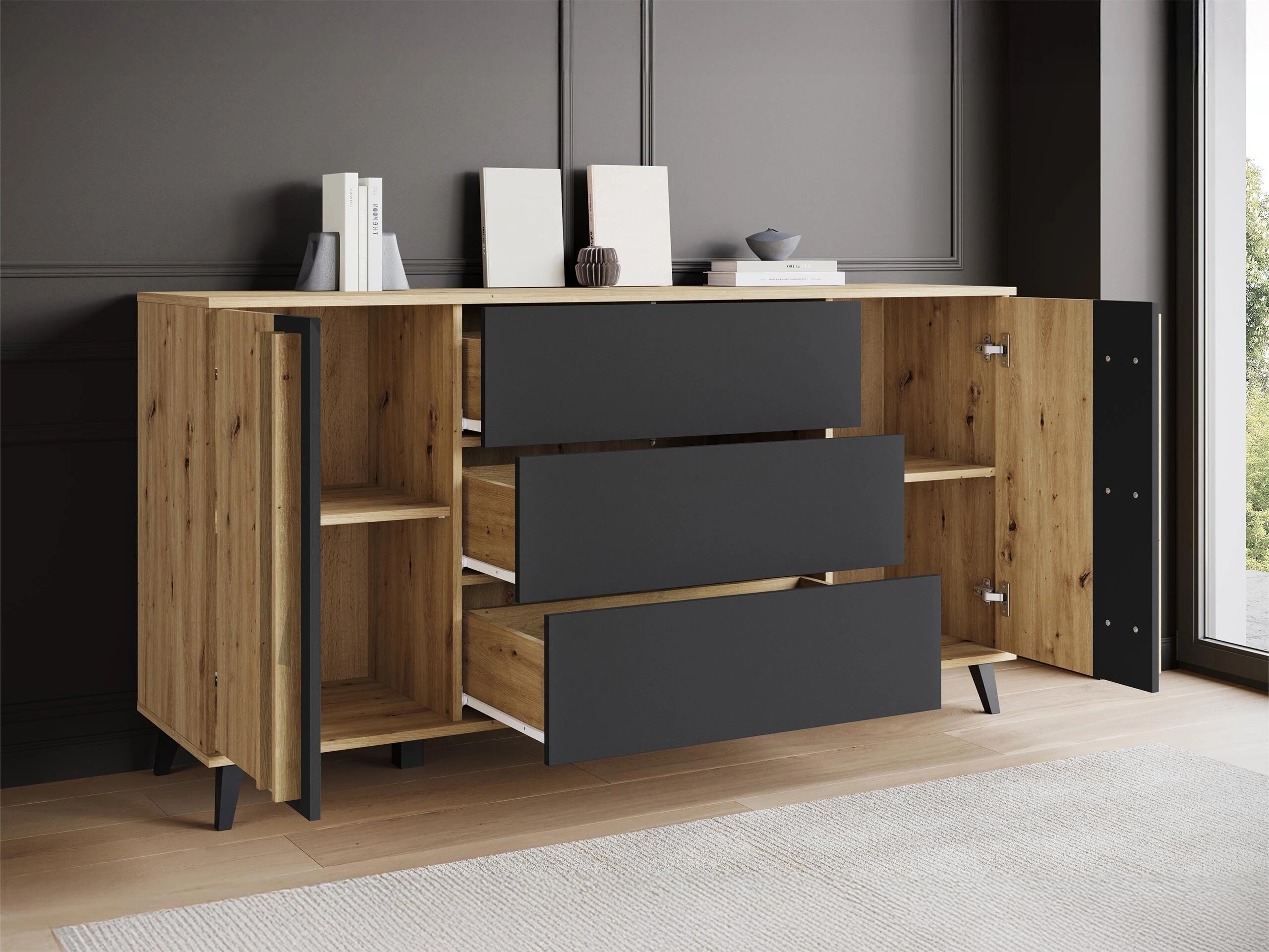 Svetainės komplektas Temora 105 (Artisan ąžuolas + Grafitas)