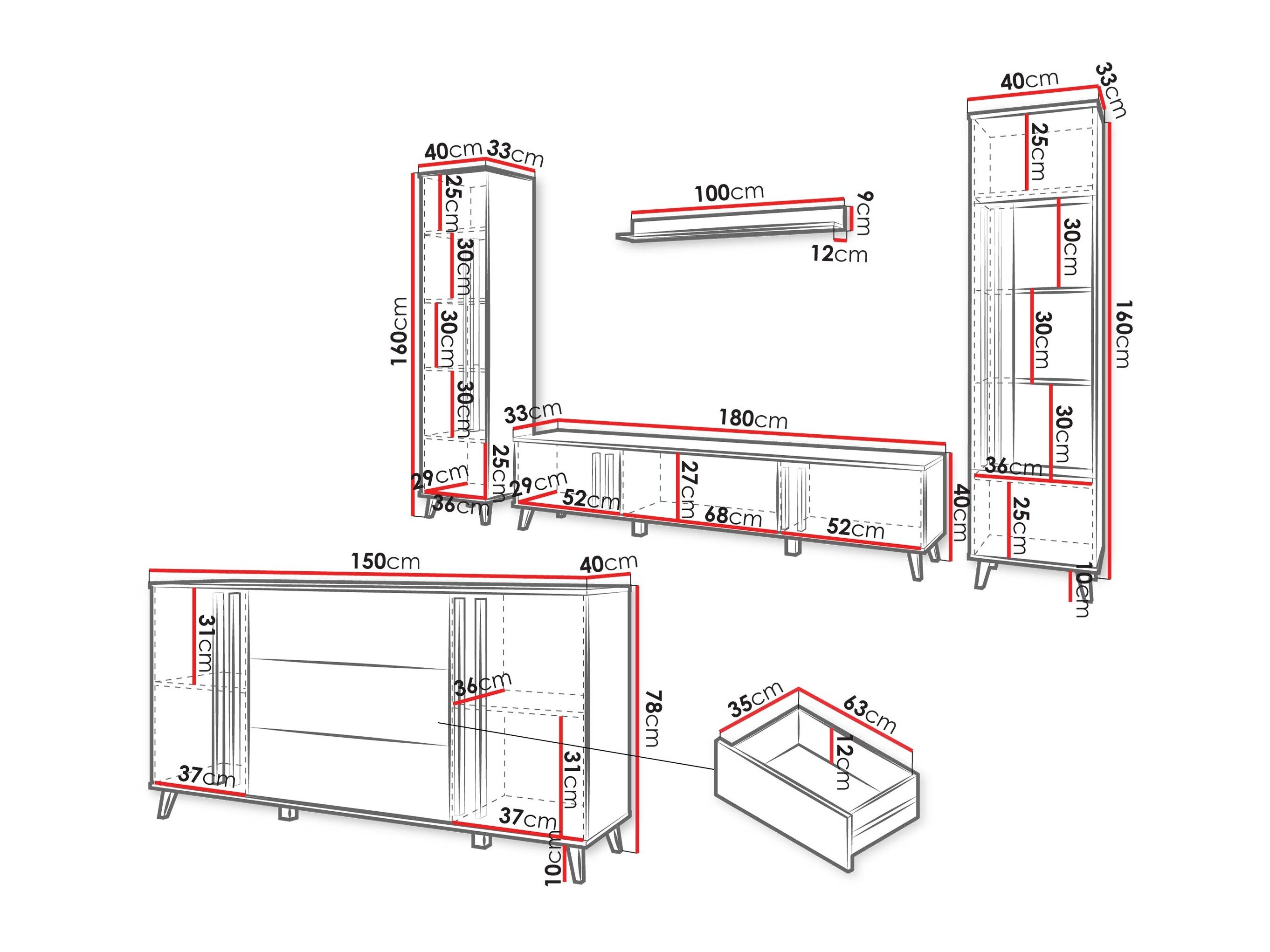40 x 180 x 33 cm