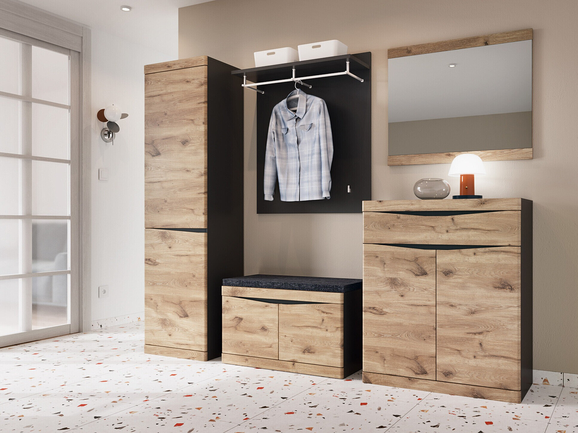 - Sieninė drabužių kabykla