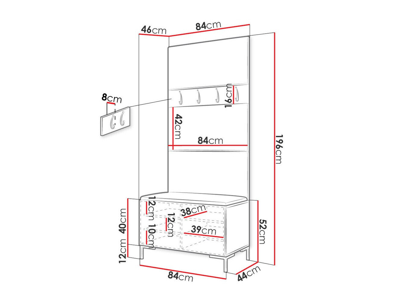 16 x 84 x 8 cm