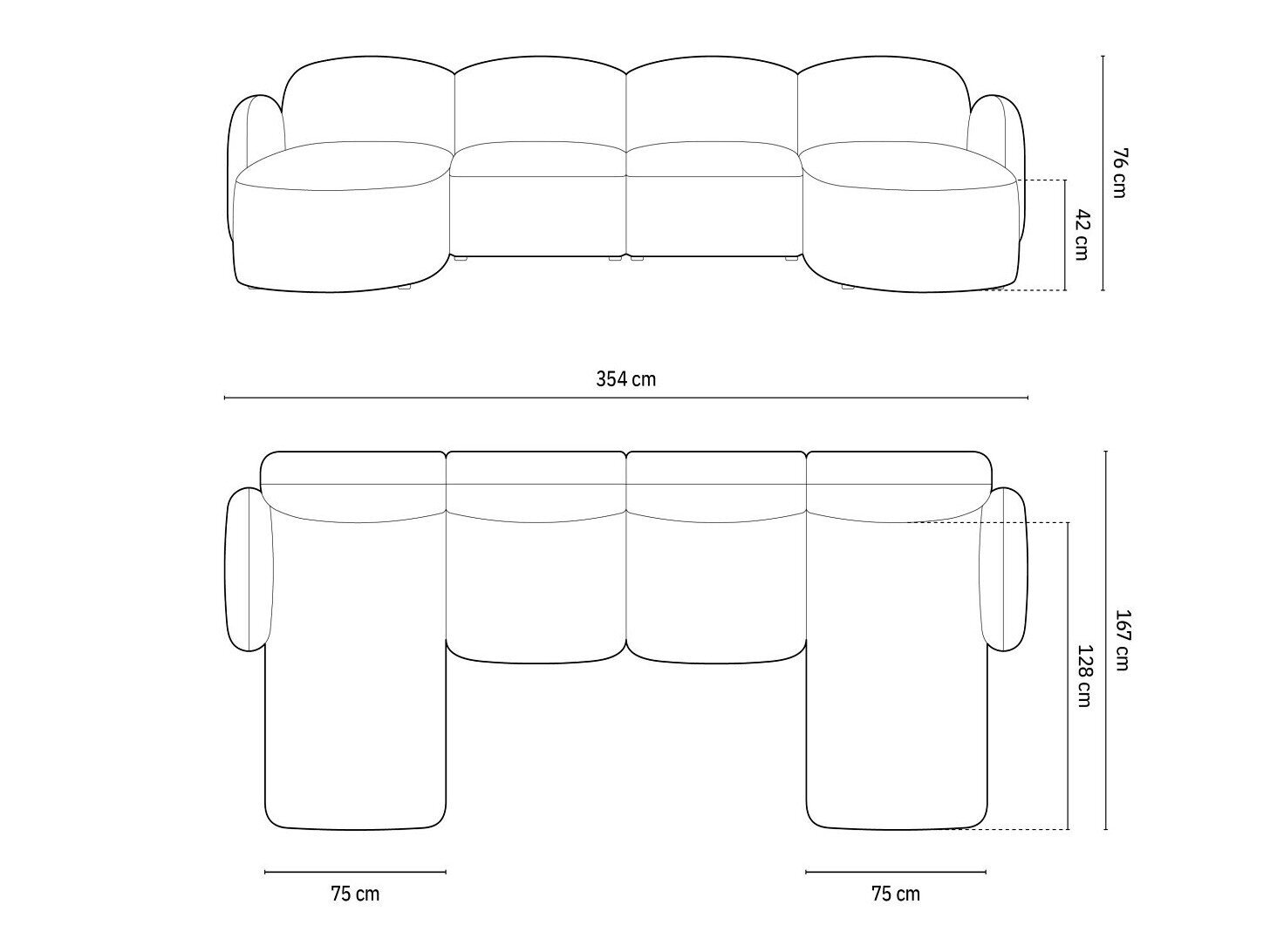76 cm  354 cm  167 cm
