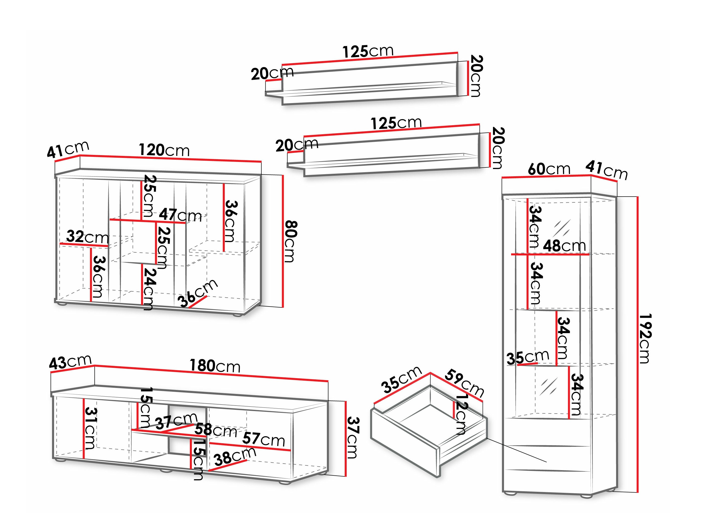 37 x 180 x 43 cm