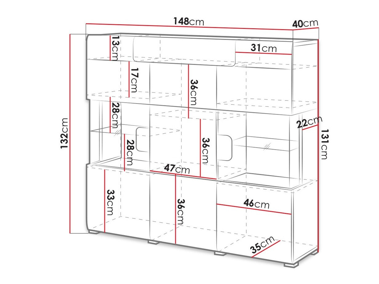 Baldų kolekcijoje rasite įvairių dydžių spintelės, erdvias komodas, lentyną bei žurnalinį staliuką. Blizgi baldų apdaila optiškai padidins interjerą. Komodų dureles ir stalčius galėsite atidaryti vos vienu paspaudimu, nes jose įmontuotas „Push to open“ mechanizmas garantuoja patogumą.