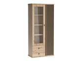 Kolekcijoje dominuoja „Artisan” ąžuolo spalva, o fasaduose pastebimos medžio rašto užuominos. Juodos, nedidelės, metalinės rankenėlės, puikiai įsilieja į visumą. Kolekcijos akcentu tampa dekoratyvinės vertikalios linijos. Šis sprendimas suteikia baldams išskirtinio charakterio, taip pat atstoja baldų rankenėles, leisdamos atidaryti baldų dureles. Balduose netrūksta lentynėlių ir stalčių, kurie padės sutalpinti svarbiausia smulkmenas. Įmontuotas tylaus uždarymo mechanizmas, kuris ypatingas tuo, kad apsaugo dureles ir stalčius nuo greito užsidarymo. Specialių slopintuvų dėka durelės ir stalčiai yra pristabdomi prieš pat užsidarymą ir iš lėto pritraukiami, taip nesukeliant jokio triukšmo. Nuo spintelės iki vitrinos, nuo Tv staliuko iki pakabinamos lentynėlės, šioje kolekcijoje rasite įvairių baldų svetainės erdvei. Jei siekiate sukurti vientisą interjerą be didelių pastangų, rinkitės baldų komplektą.
