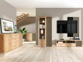 Kolekcijoje dominuoja „Artisan” ąžuolo spalva, o fasaduose pastebimos medžio rašto užuominos. Juodos, nedidelės, metalinės rankenėlės, puikiai įsilieja į visumą. Kolekcijos akcentu tampa dekoratyvinės vertikalios linijos. Šis sprendimas suteikia baldams išskirtinio charakterio, taip pat atstoja baldų rankenėles, leisdamos atidaryti baldų dureles. Balduose netrūksta lentynėlių ir stalčių, kurie padės sutalpinti svarbiausia smulkmenas. Įmontuotas tylaus uždarymo mechanizmas, kuris ypatingas tuo, kad apsaugo dureles ir stalčius nuo greito užsidarymo. Specialių slopintuvų dėka durelės ir stalčiai yra pristabdomi prieš pat užsidarymą ir iš lėto pritraukiami, taip nesukeliant jokio triukšmo. Nuo spintelės iki vitrinos, nuo Tv staliuko iki pakabinamos lentynėlės, šioje kolekcijoje rasite įvairių baldų svetainės erdvei. Jei siekiate sukurti vientisą interjerą be didelių pastangų, rinkitės baldų komplektą.