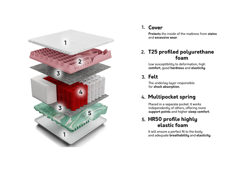 Čiužiniai su „Multipocket“ spyruoklėmis pasižymi kur kas didesniu spyruoklių kiekiu nei įprasti, „Pocket“ tipo čiužiniai. Kiekviena spyruoklė yra įvilkta į atskirą maišelį, todėl juda ne visas čiužinio paviršius, o tik ta vieta, kuriai tenka kūno svoris. Ant tokio čiužinio greta miegantieji gali laisvai judėti nejudindami viso čiužinio paviršiaus. Dėl spyruoklių gausos ir patogesnės atramos stuburui kūnas geriau atsipalaiduoja.