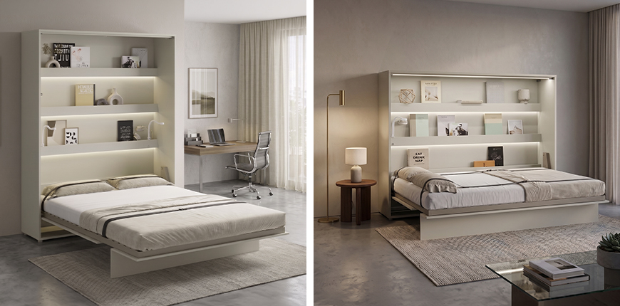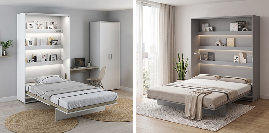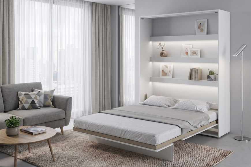 Šie modeliai pritaikyti standartiniams 140 x 200 cm arba 160 x 200 cm čiužiniams, tad miego kokybė niekuo nenusileidžia įprastai lovai. Tai puikus būdas studijos tipo butą akimirksniu paversti miegamuoju: dieną čia galite vakarieniauti su draugais, o vakare, vos vienu judesiu, sukurti pilnavertę poilsio zoną. Svarbiausia, kad lova su visa patalyne saugiai pasislepia spintoje, taip išlaikant kambario tvarką ir higieną.