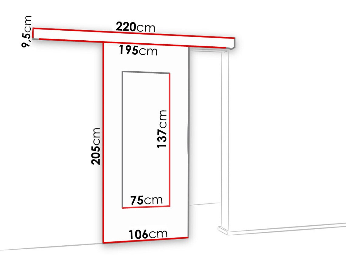 Stumdomų durų sistemos matmenys: