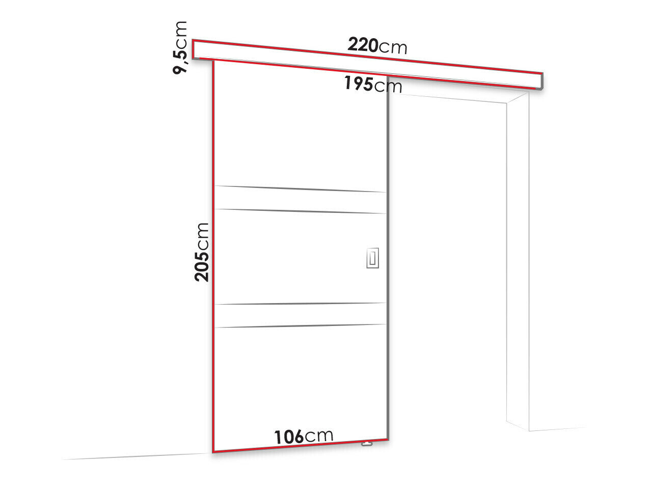 Stumdomų durų sistemos matmenys: