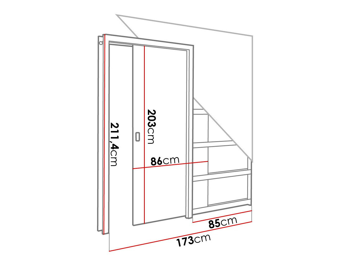 Stumdomų durų sistemos matmenys: