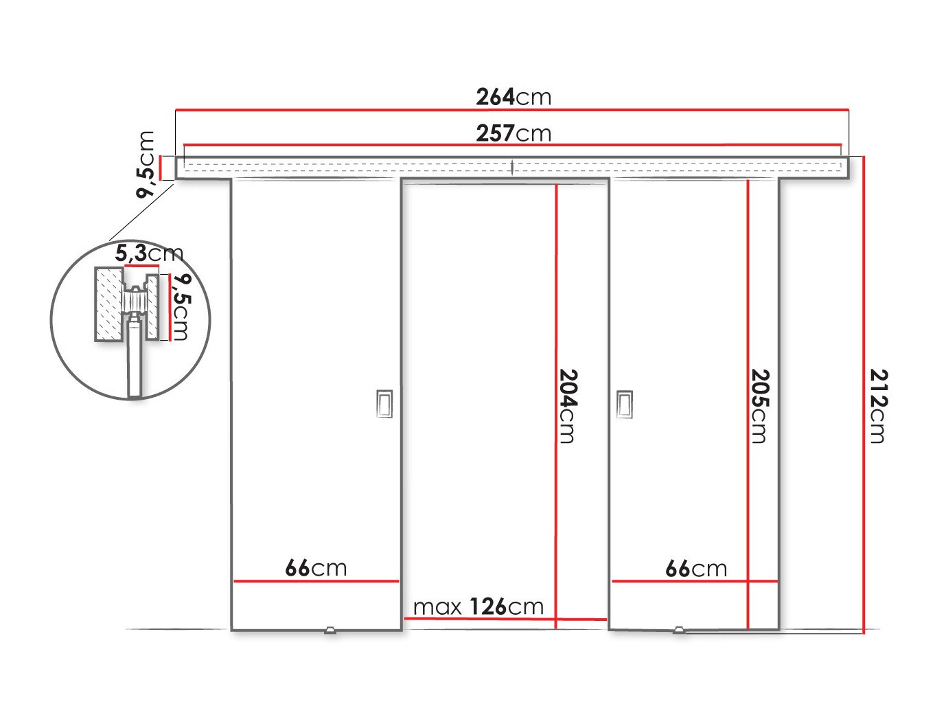 Stumdomų durų sistemos matmenys: