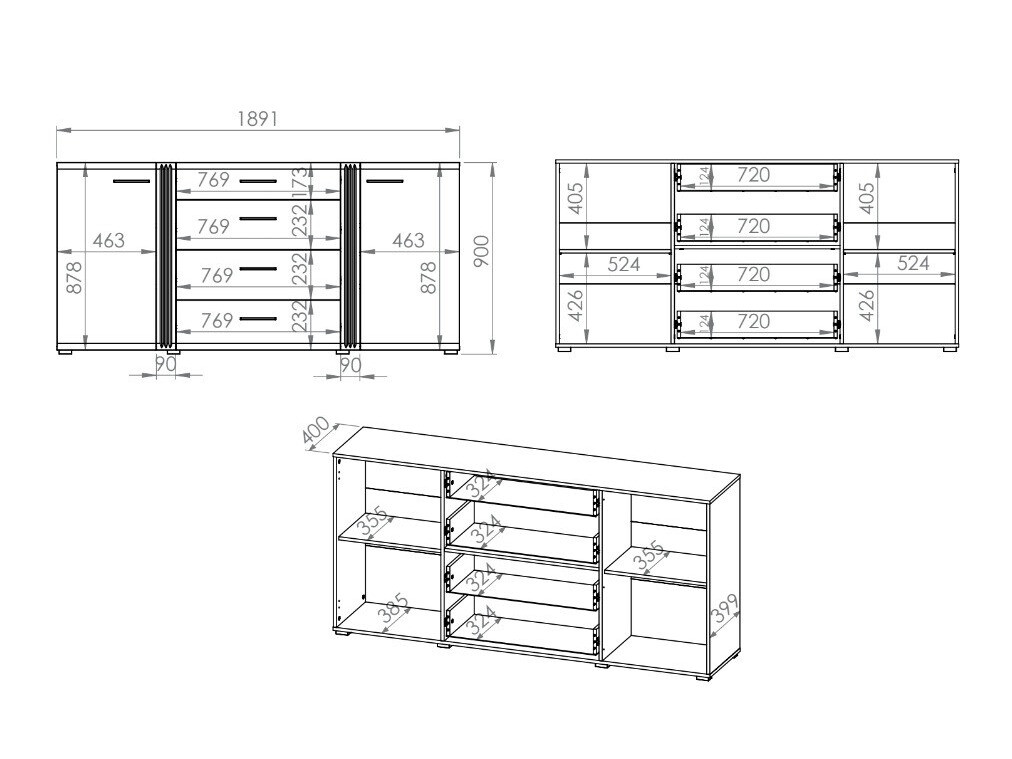 Pakuotės išmatavimai: