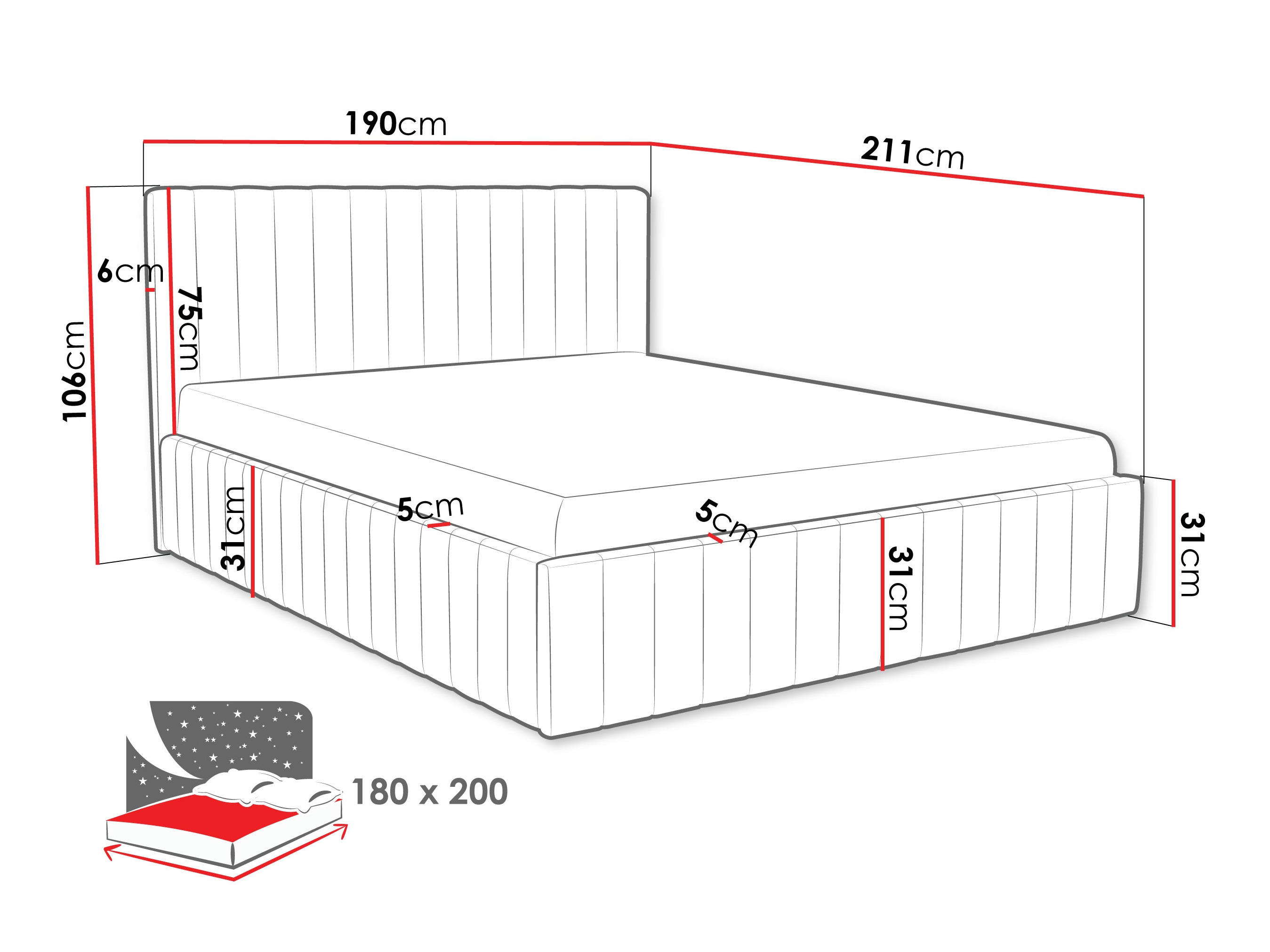 28 x 180 x 200 cm