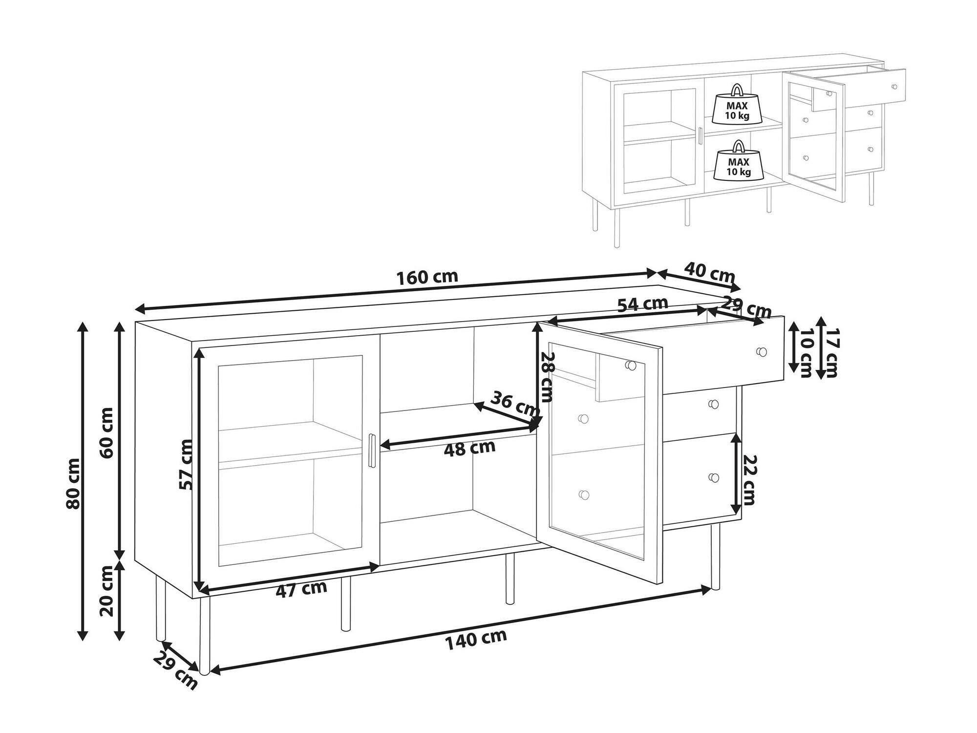 Maksimalus išlaikomas svoris stalčiui: