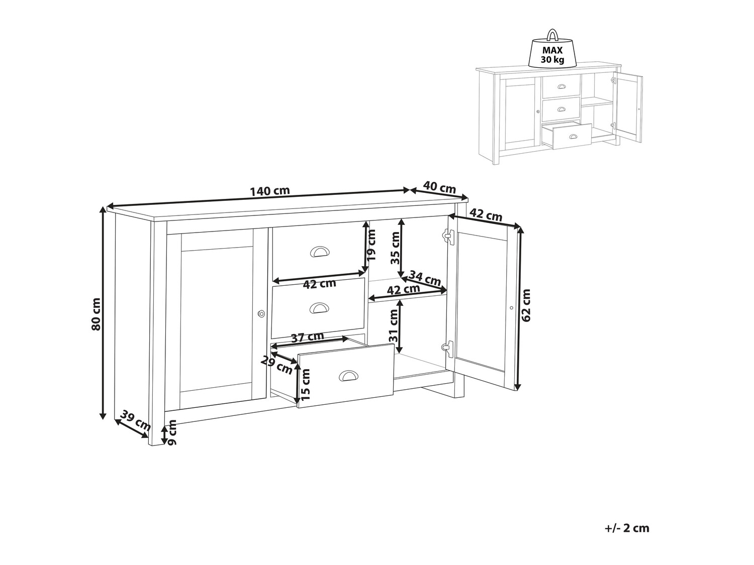 Maksimalus išlaikomas svoris stalčiui: