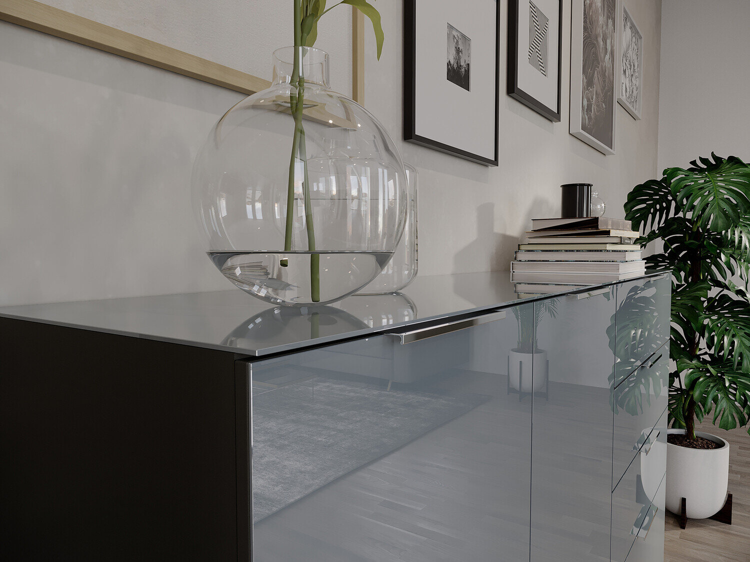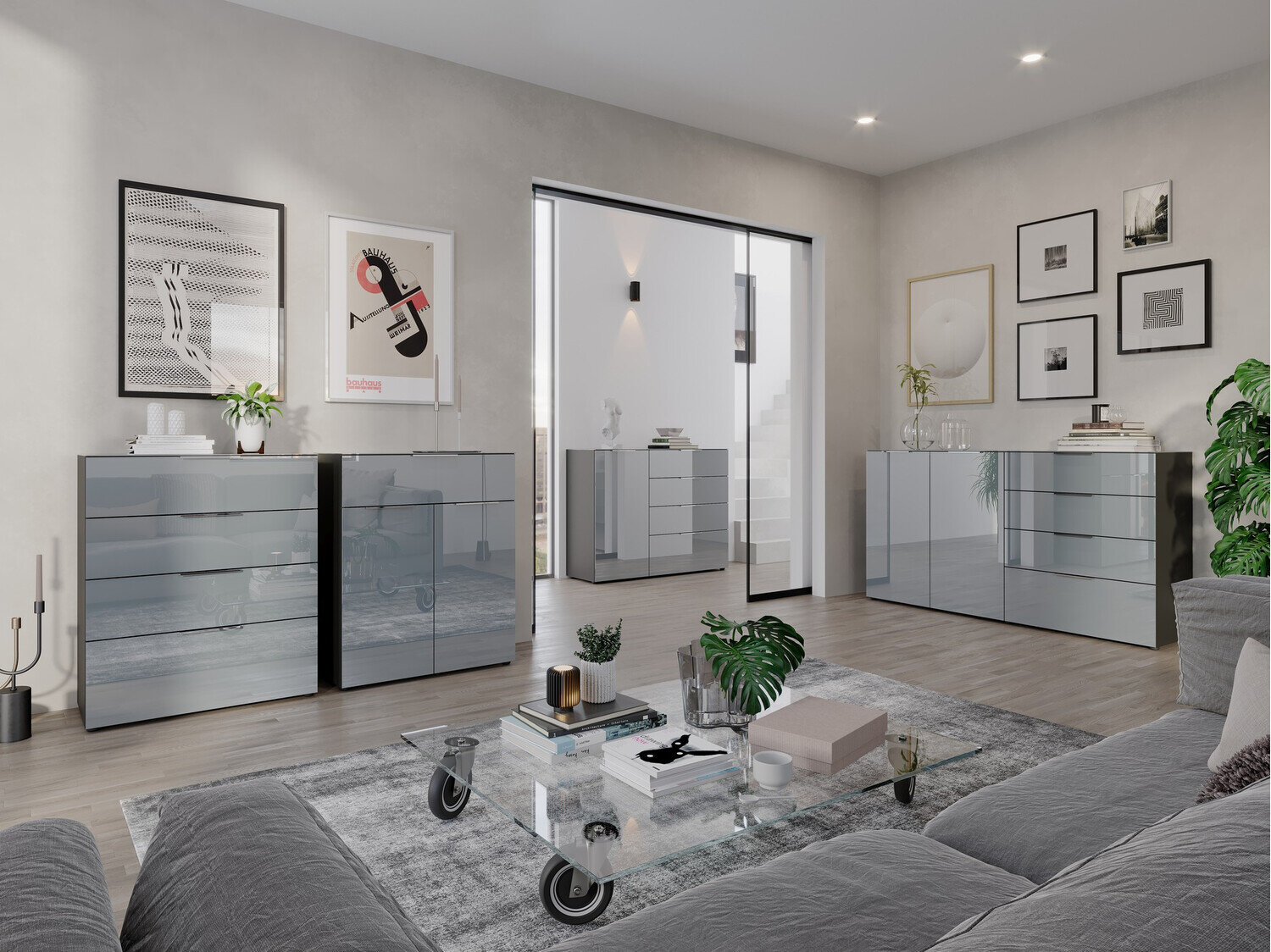 Komoda Sacramento 301 (Grafitas + Blizgus pilkas)