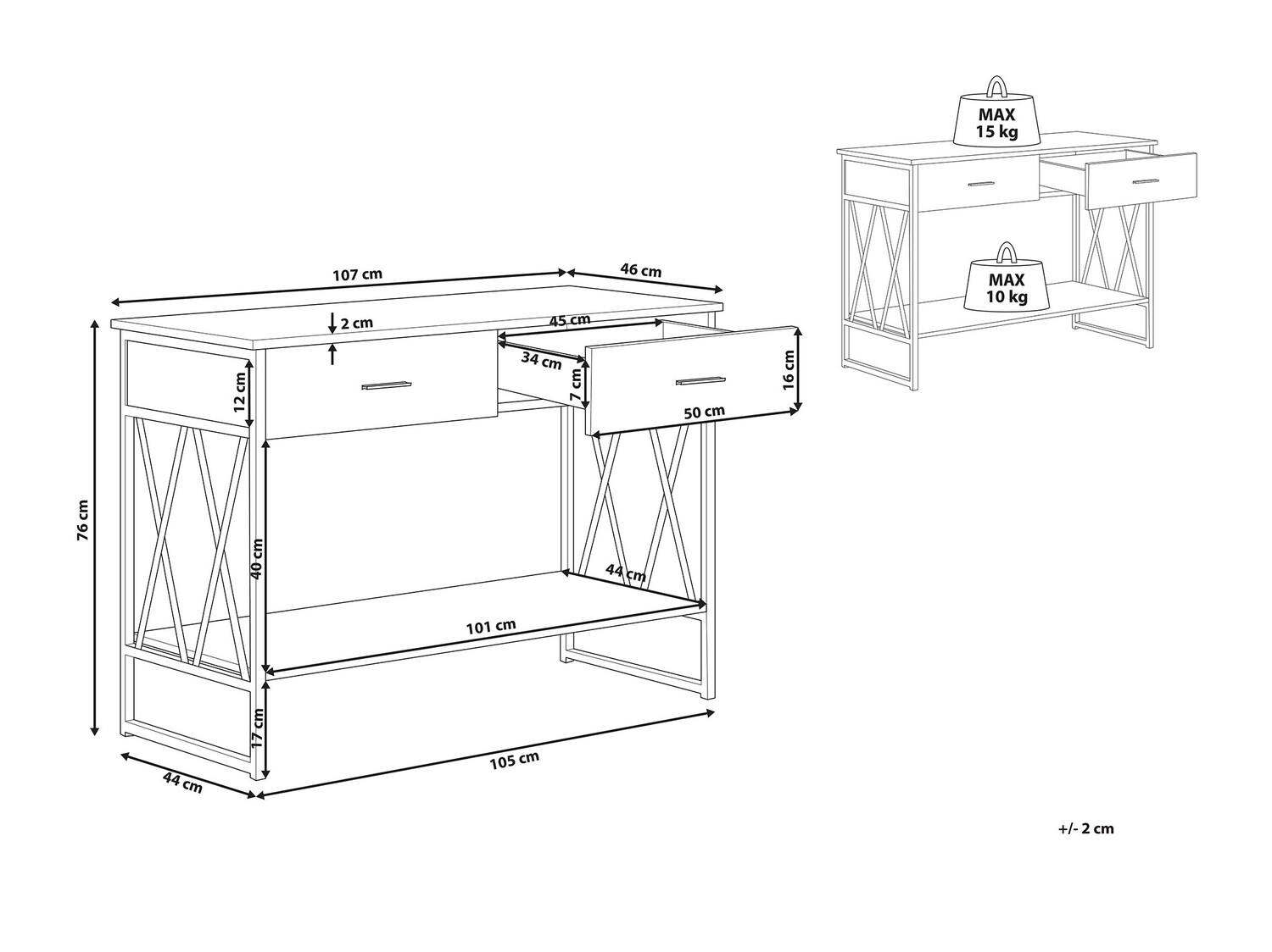 Maksimalus išlaikomas svoris stalčiui: