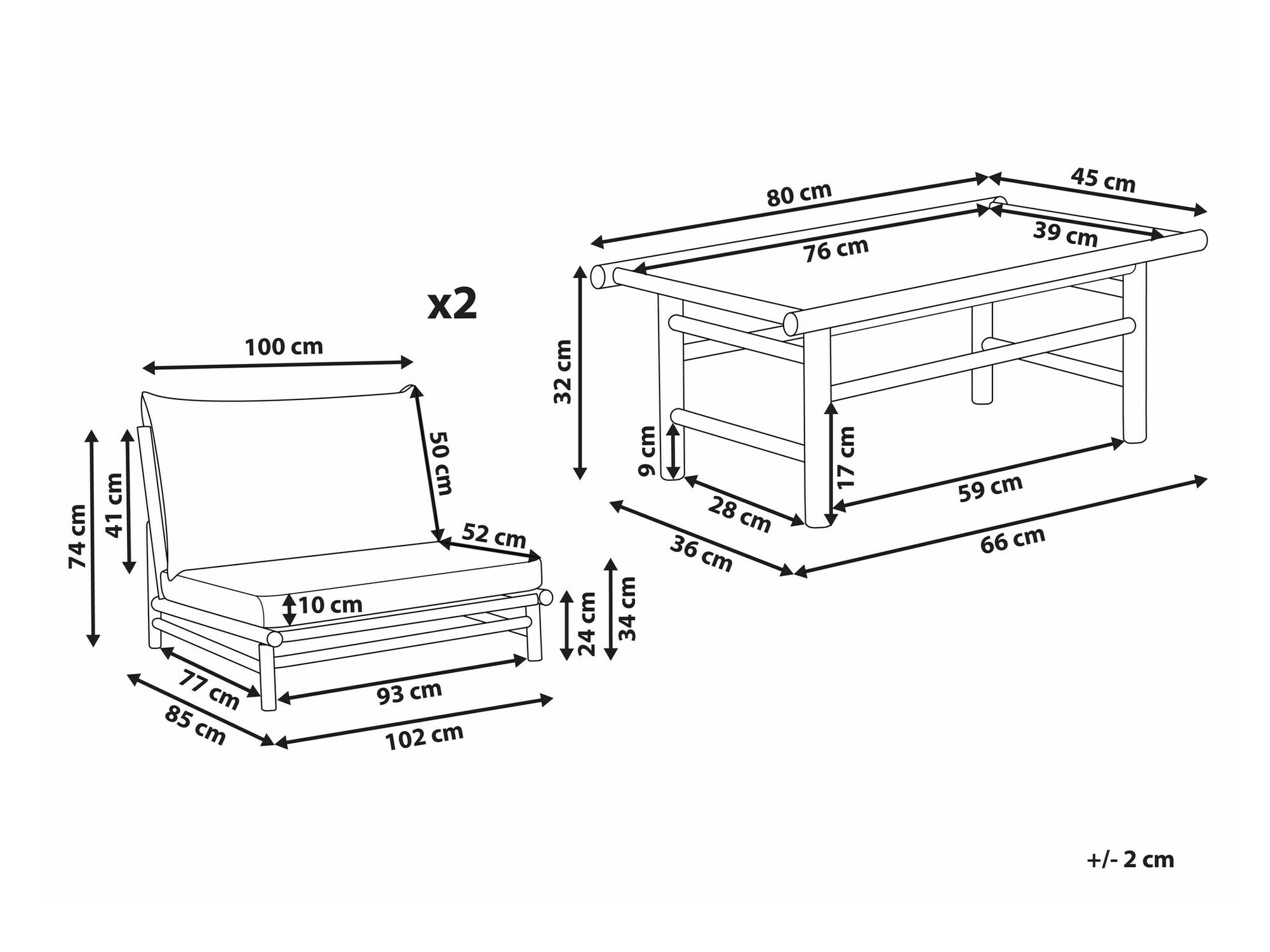 74 x 102 x 85 cm