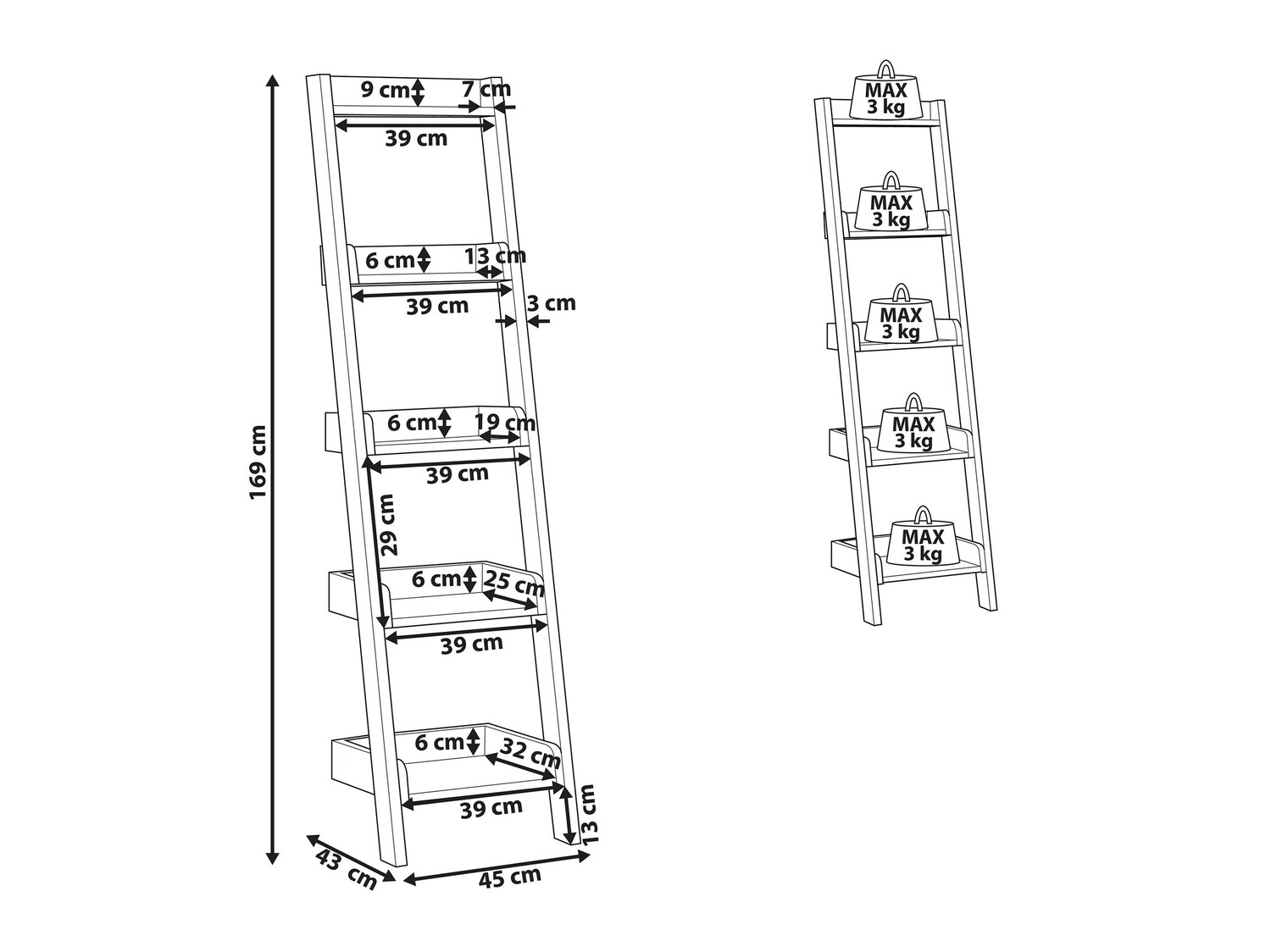 Maksimalus išlaikomas svoris lentynėlei: