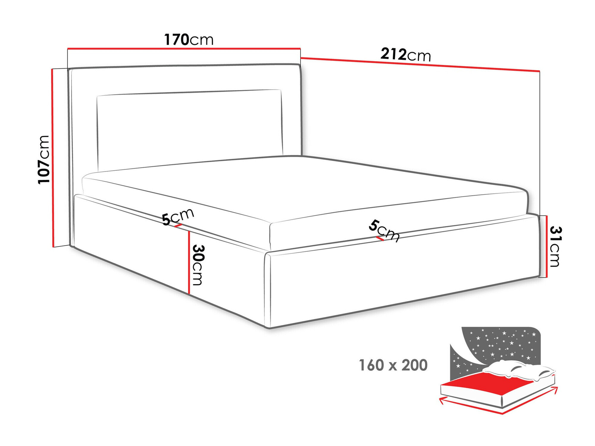 Pritaikyta čiužiniui [feature] Pritaikyta čiužiniui 160 x 200 cm