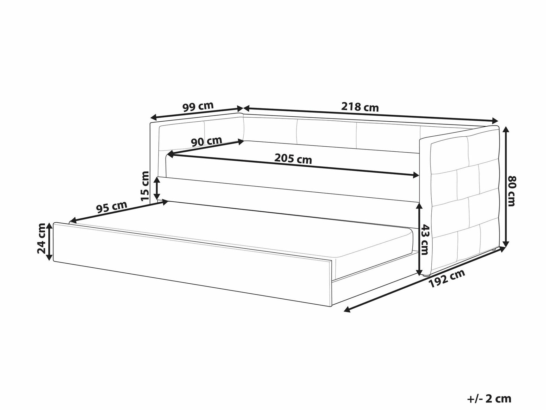 - 90 x 200 cm