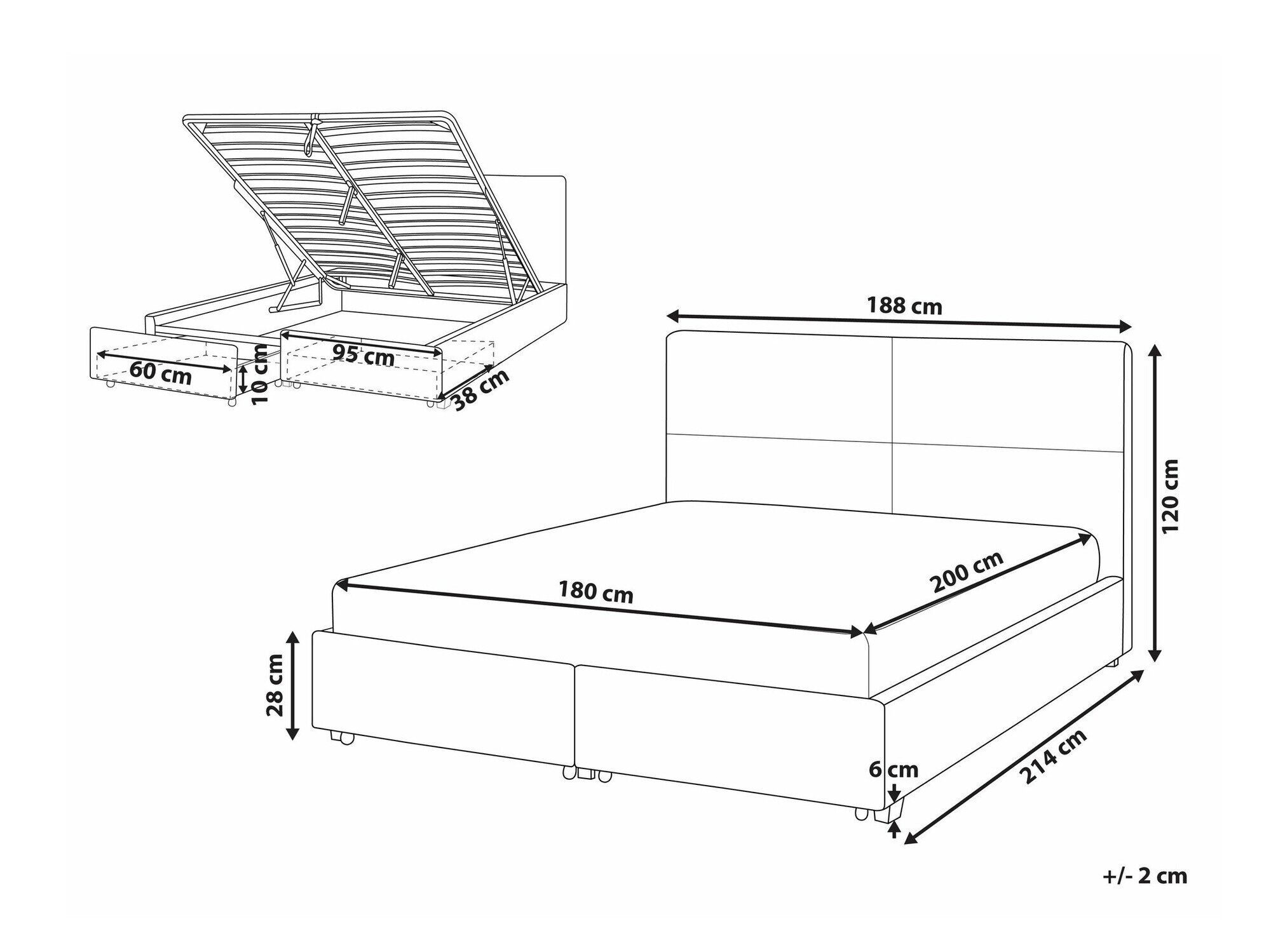 - 180 x 200 cm