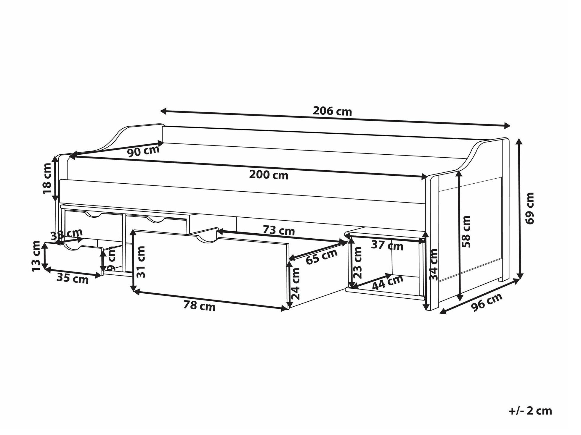 - 90 x 200 cm