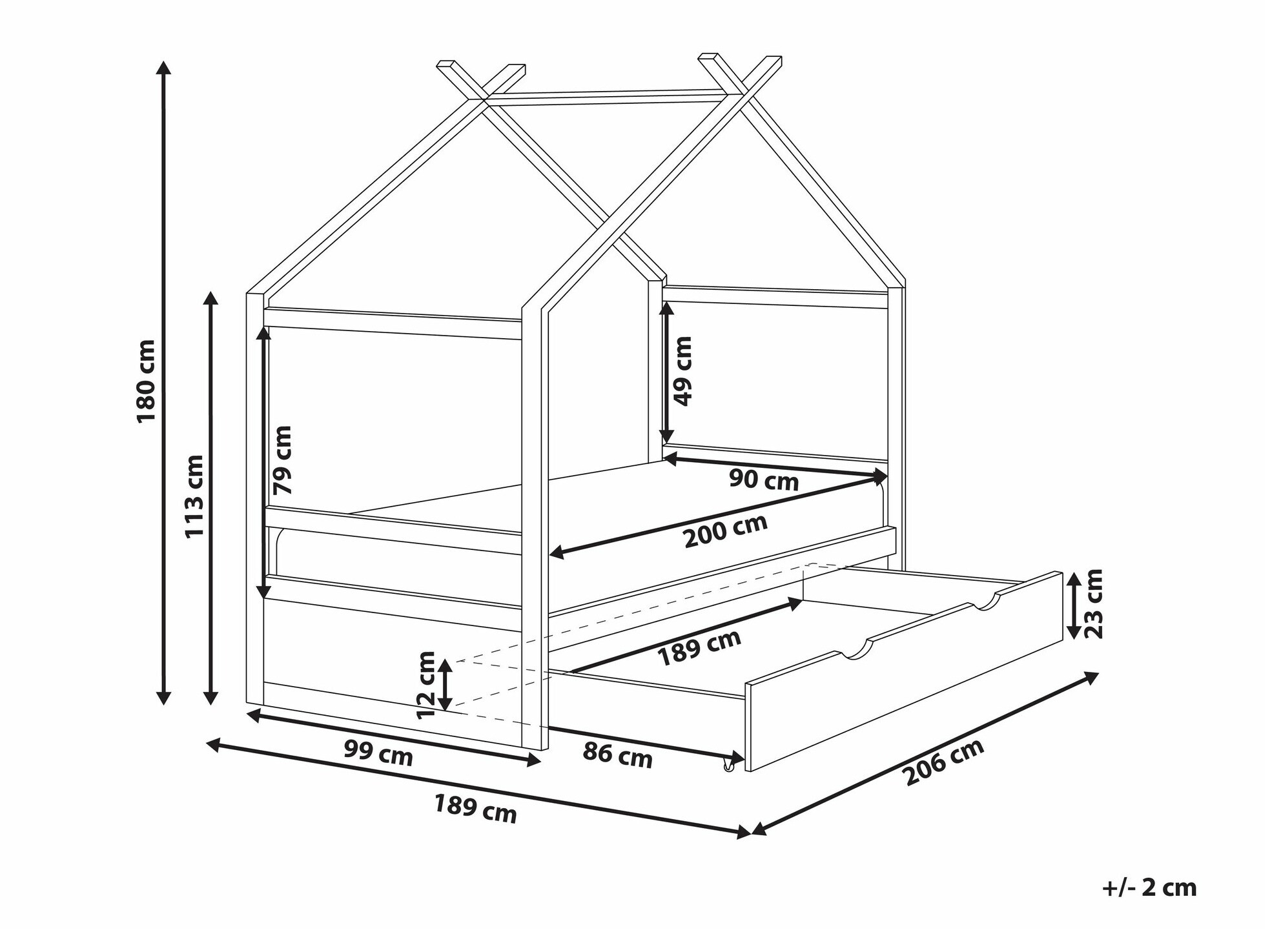 - 90 x 200 cm