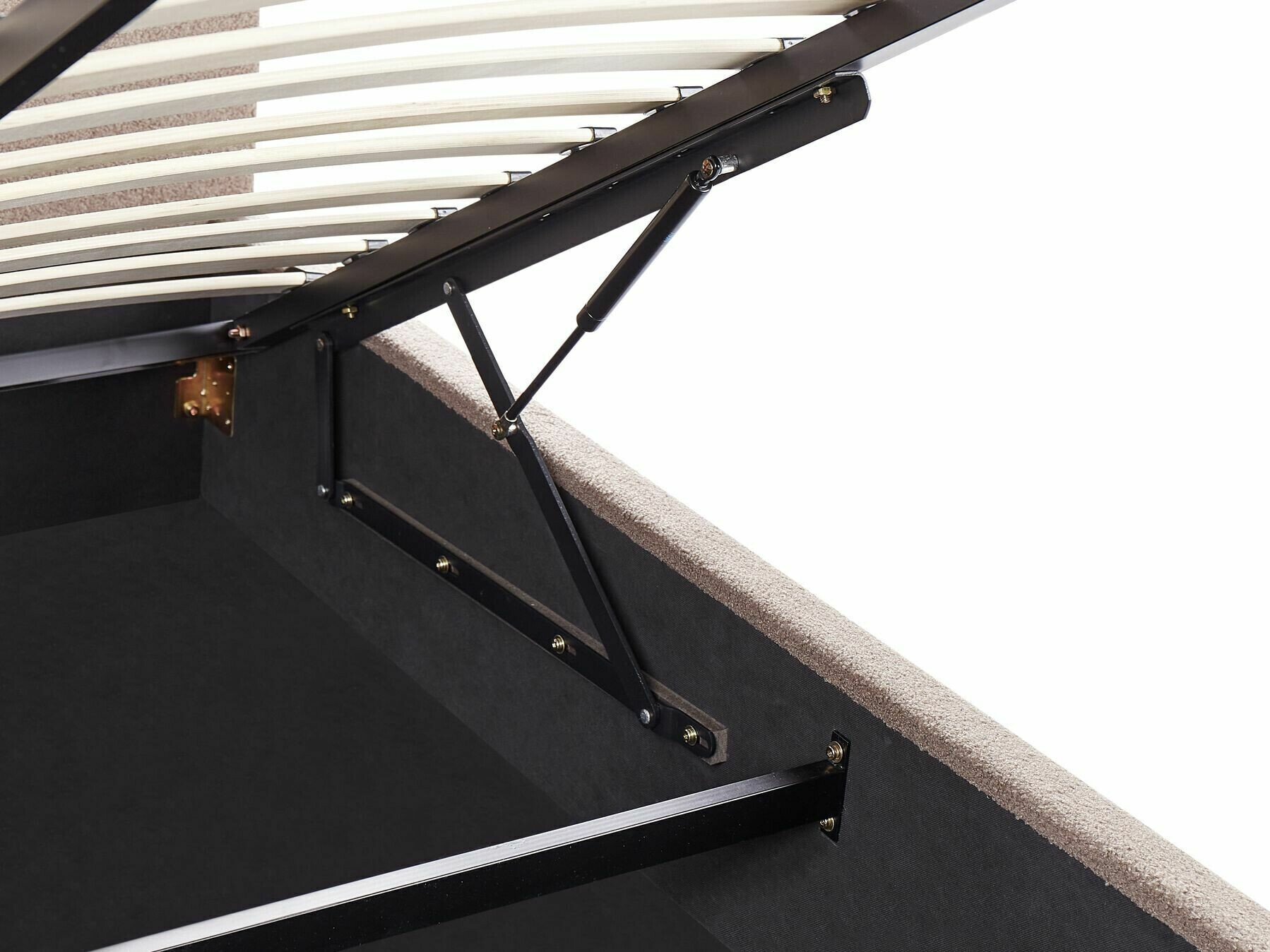 Dujinis pakėlimo mechanizmas yra vienas lengviausių, nes kėlimo metu, visa apkrova tenka būtent šiam mechanizmui. Pakėlimo mechanizmo galią užtikrina dujų amortizatorius. Jį sudaro cilindras, užpildytas aukšto slėgio azotu, alyvos sklendė ir stūmoklis su lazdele. Šis mechanizmas palengvina naudojimąsi baldais: spintelių durelių ar lovos grotelių pakėlimo procesą.