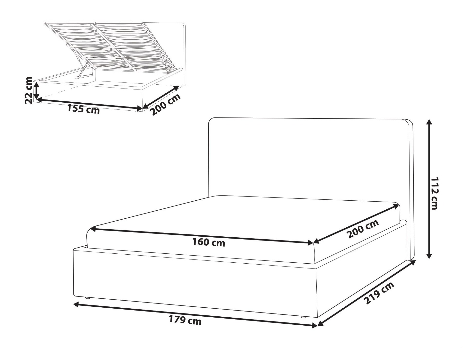 22 x 155 x 200 cm