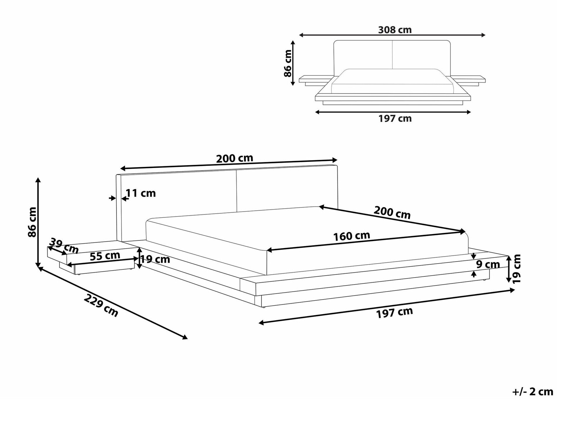 86 cm  200 cm  229 cm