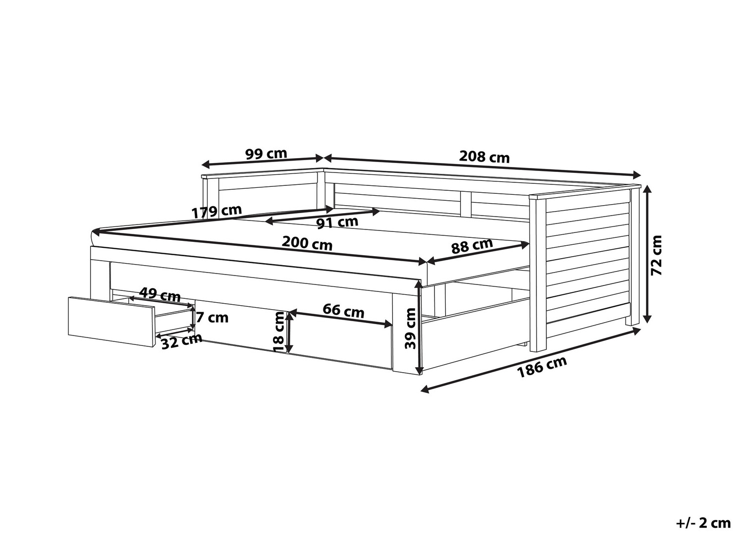 - 90 x 200 cm